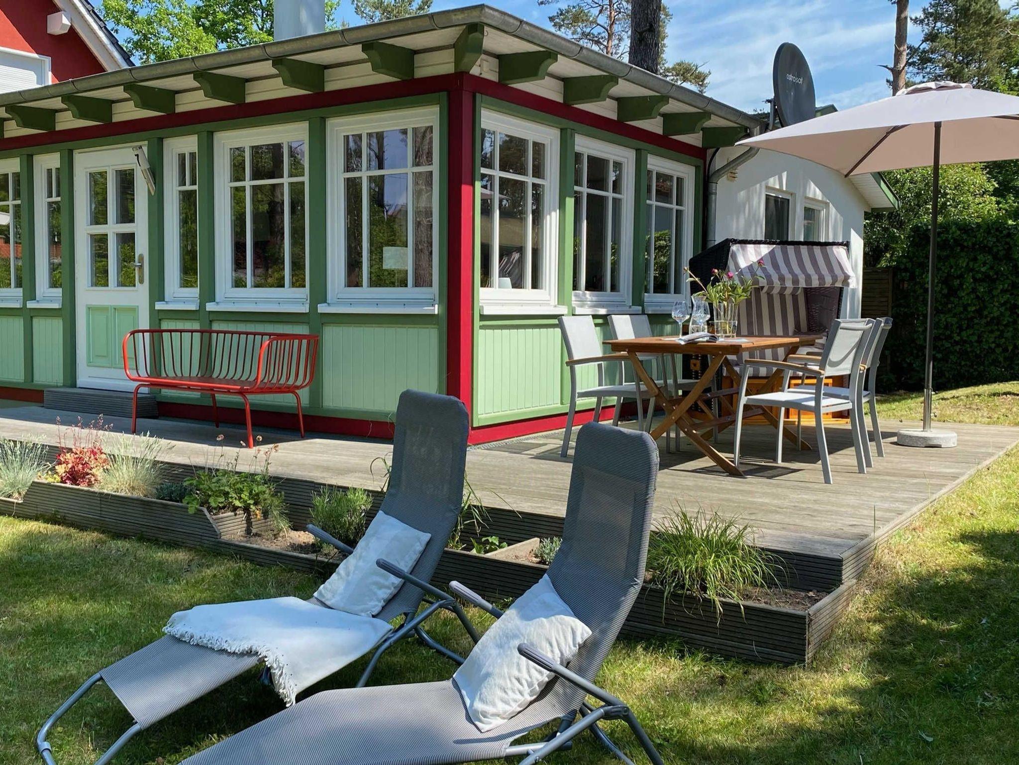 Gemütliches Ferienhaus Kienhus in ruhiger Lage bei Graal-Müritz mit Kamin, Terrasse und optionaler Fasssauna.