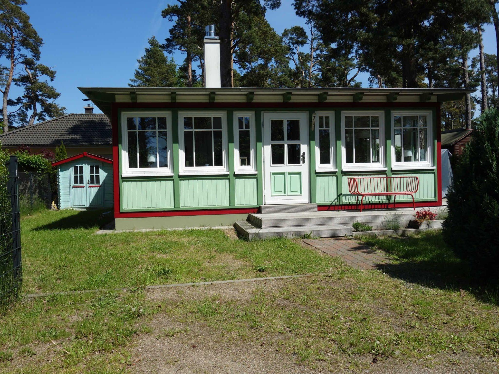 Ferienhaus mit Wohnzimmer, 2 Schlafzimmern, Bad mit Dusche und Grundstück mit Terrasse und optional nutzbarer Fasssauna. Parkplatz und W-Lan inklusive!