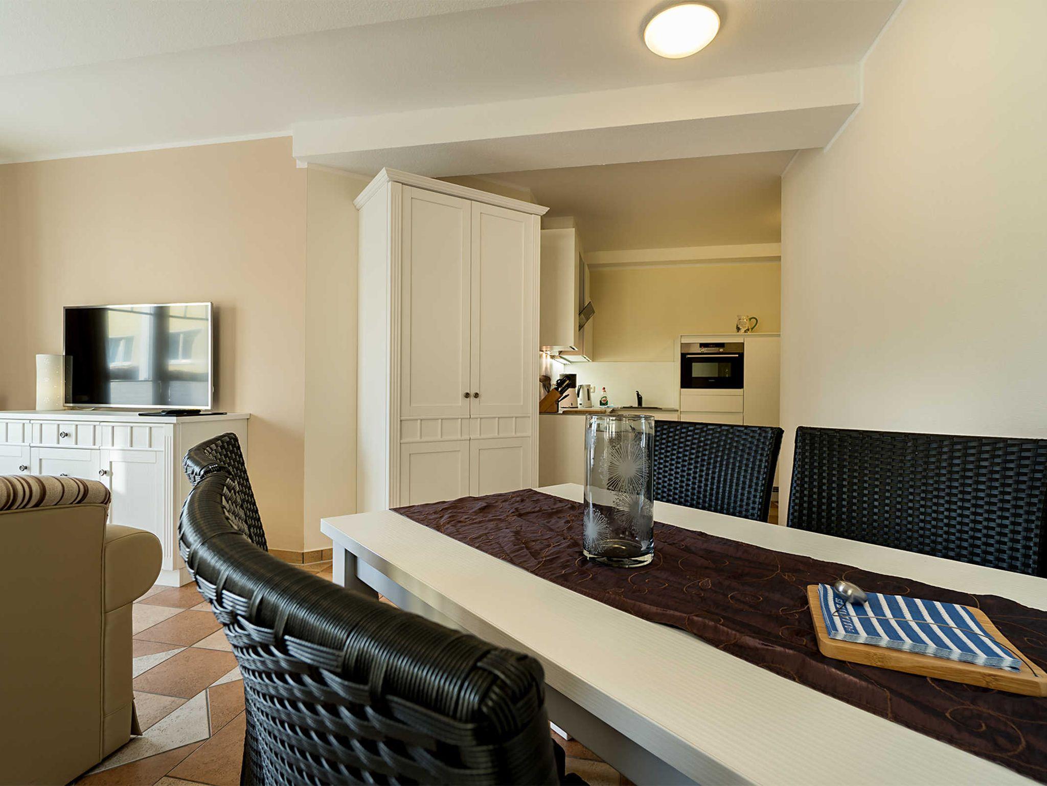 Die Ferienwohnung ist geschmackvoll eingerichtet und gehört zu einem Gästehaus mit insgesamt 4 Ferienwohnungen. Unsere Villa wurde 2013 komplett renoviert und neu möbliert. Im Keller stehen eine Waschmaschine und ein Trockner zur Verfügung. Auf dem Grundstück kann eine Sitz- und Grillecke genutzt werden (Gemeinschaftsnutzung) und unsere kleinen Gäste können sich in und an unserem Buddelschiff austoben. Mitgebrachte Fahrräder können im abschließbaren Fahrradschuppen sicher untergestellt werden.