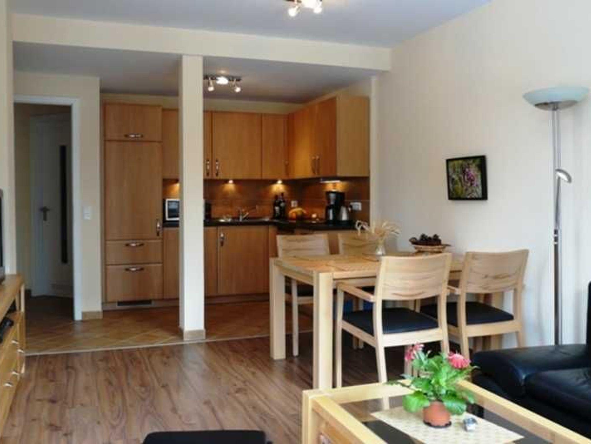 In dieser 2009 im Haus Bucheneck modern und komfortabel eingerichteten, hellen 3-Raum-Dachgeschosswohnung mit Süd-West-Terrasse und Blick zum Küstenwald sind ein bis drei Gäste willkommen.