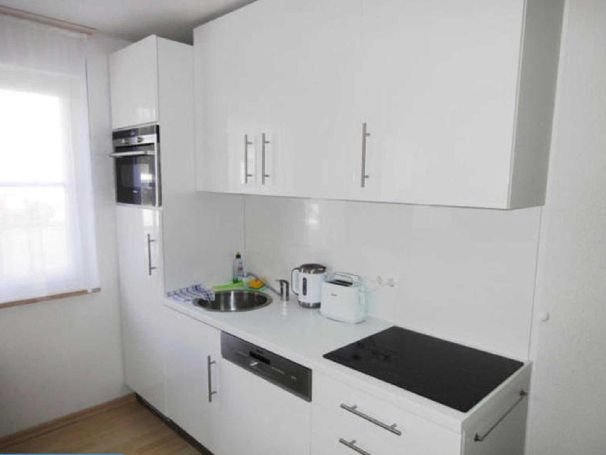 Im integrierten Küchenbereich befinden sich unter anderem ein Induktions-Herd (4 Platten), ein Geschirrspüler, ein Kühlschrank, ein kleiner Backofen mit integrierter Mikrowelle, eine Kaffeemaschine, ein Mixer und ein Wasserkocher.
