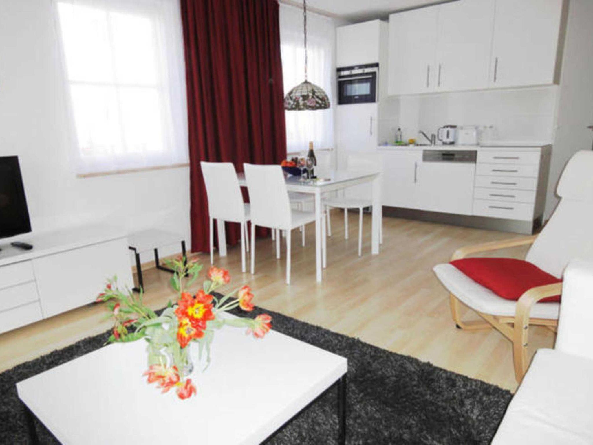 In der Ferienwohnung gibt es ein Wohnzimmer mit Fernseher und Couch, eine offene Küche mit Backofen, Geschirrspüler und Kühlschrank, ein Bad mit Dusche, WC und Waschtisch sowie ein Schlafzimmer mit Doppelbett und Kleiderschrank. Zu der Ferienwohnung gehört ein PKW-Stellplatz. W-LAN steht Ihnen in der Ferienwohnung kostenfrei zur Verfügung.