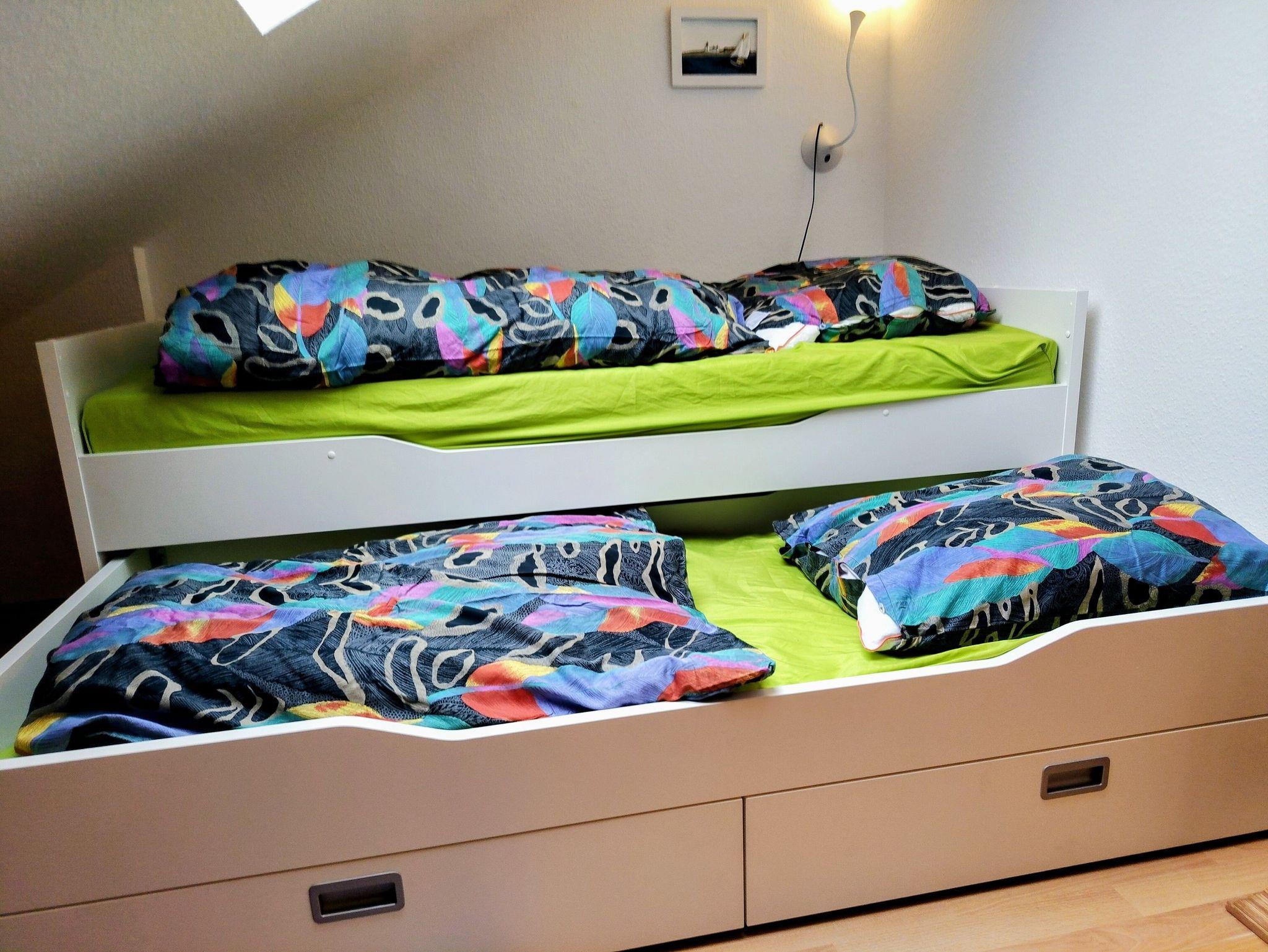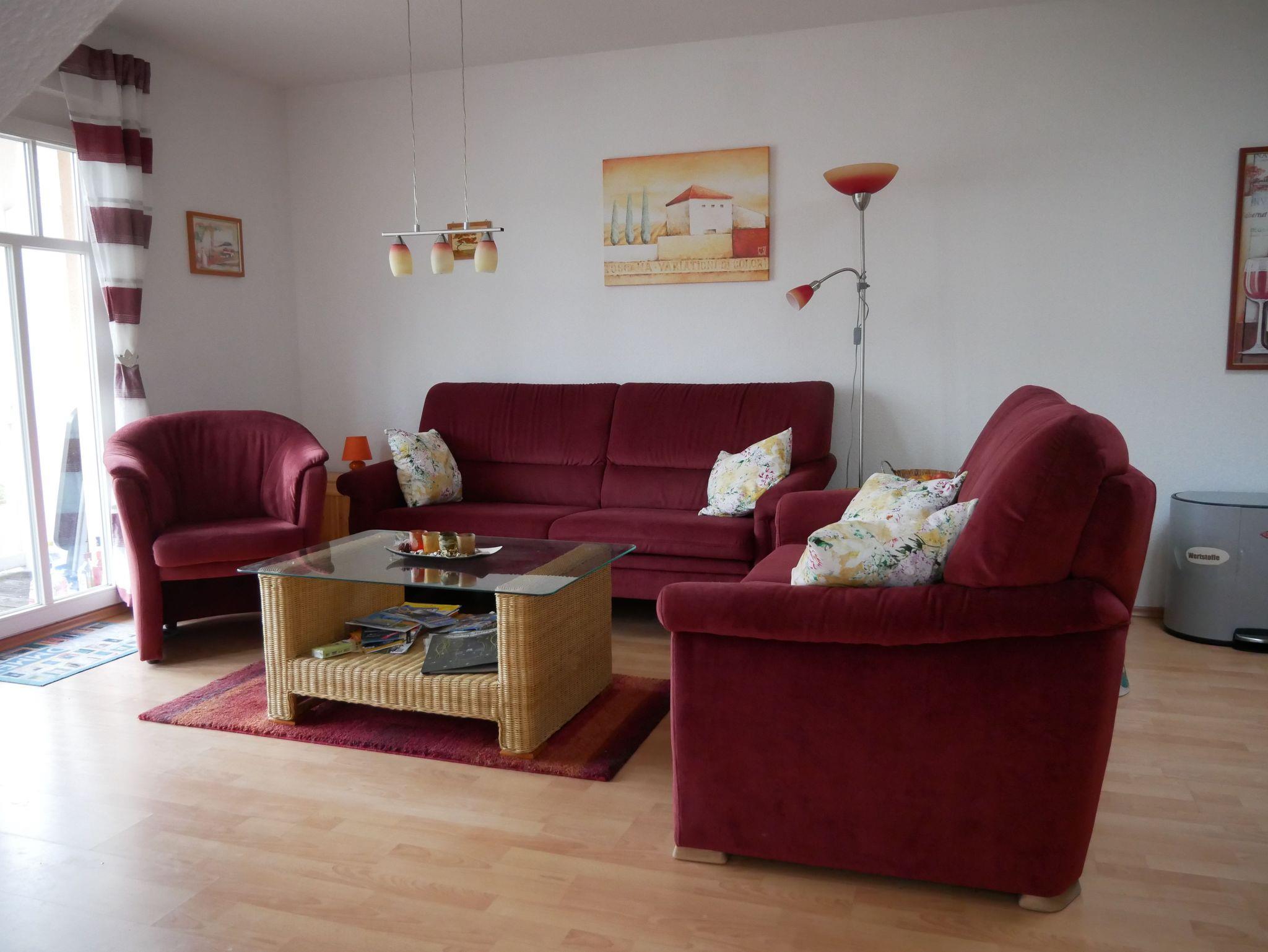 Die gemütliche, helle und freundliche Dachgeschosswohnung befindet sich im 2. OG eines im Bäderhausstil im Jahre 2005 erbauten Appartmenthauses. Die 53 qm große Wohnung verfügt über einen großzügigen Wohnbereich, zwei räumlich getrennte Schlafzimmer, jeweils mit pflegeleichtem Laminatfußboden und ein großes Bad. Im Eingangsbereich des Wohnraumes befindet eine gut ausgestattete Küchenzeile mit Geschirrspüler, Herd mit Backofen, Mikrowelle und Kühlschrank. Toaster, Kaffeemaschine, Wasserkocher und -für die schnelle Reinigung zwischendurch- ein Staubsauger sind selbstverständlich vorhanden. Im Wohnbereich befinden sich eine räumlich separierte Essecke unter einem großen Fenster mit schönem Panorama und eine großzügige Couchlandschaft, die zum Verweilen und Ausruhen einlädt. Sat- TV, DVD Player und Mini- Stereoanlage sind ebenfalls vorhanden.