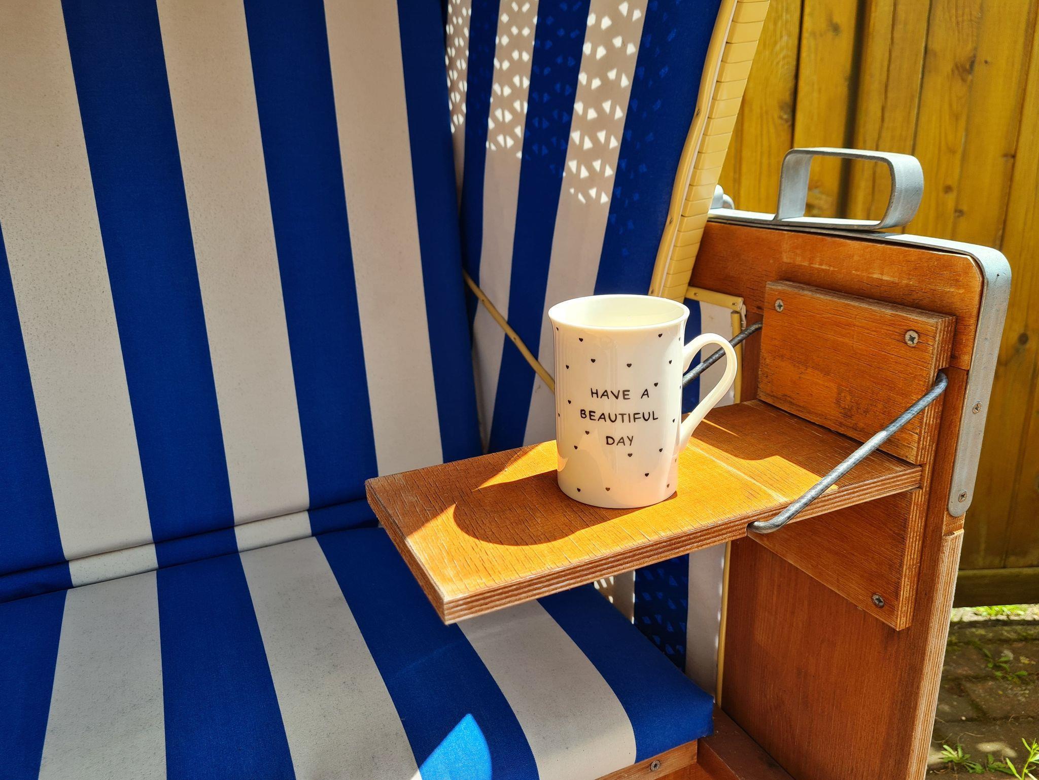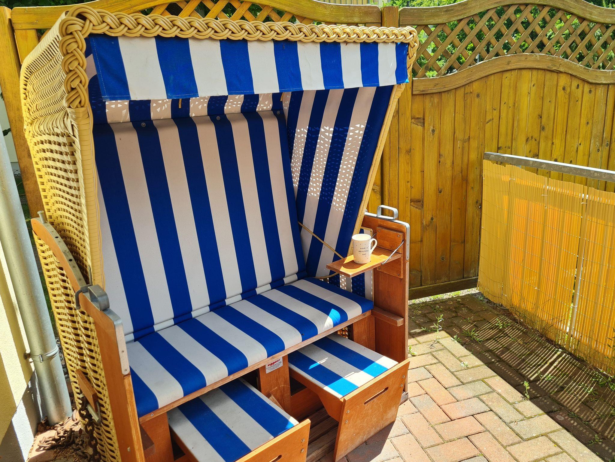 • Terrasse: Südausrichtung mit Gartenstück, Tisch, 4 Stühle, Strandkorb