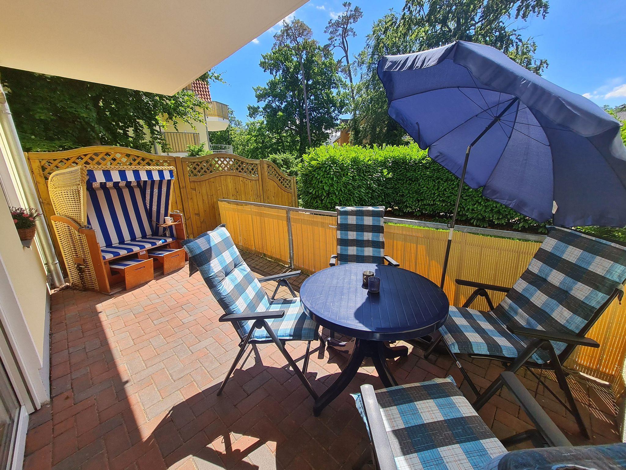 Nur 350m vom Strand entfernt liegt diese gemütlich und modern eingerichtete 3-Raum-Wohnung im Erdgeschoss mit ca. 63 m² Wohnfläche und einer sonnigen Südterrasse. Die sehr familienfreundliche Wohnung kann mit bis zu 4 Personen genutzt werden. Zwei separate Schlafzimmer und eine 1,40x2,00 m große Schlafcouch, bieten Platz für 4 Personen. Praktisch erreichbar befindet sich vor dem Objekt ein abschließbarer Außenabstellraum, der bis zu 4 Fahrrädern Platz o.ä. bietet. Der Wohnung ist ein kostenloser Stellplatz Nr.1 zugeordnet. Eine Waschmaschine steht kostenlos zu Verfügung.