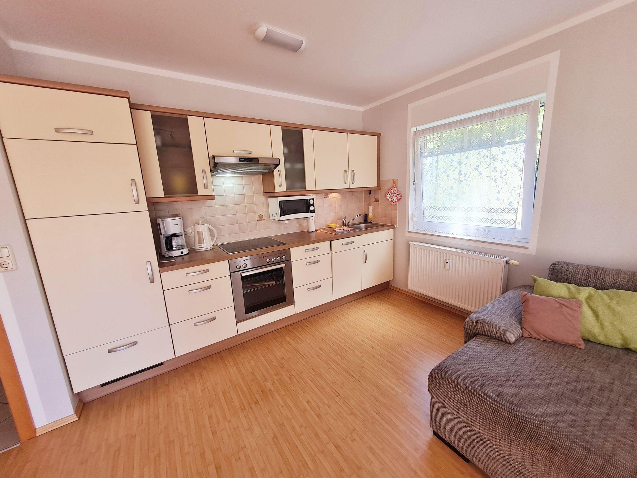 • Küche und Essbereich für 4 Personen, offen zum Wohnzimmer, komplett eingerichtete Einbauküche mit Backofen, Ceranfeld, Toaster, Kaffeemaschine, Wasserkocher, Kühlschrank mit Gefrierfach, Mikrowelle, Geschirrspüler