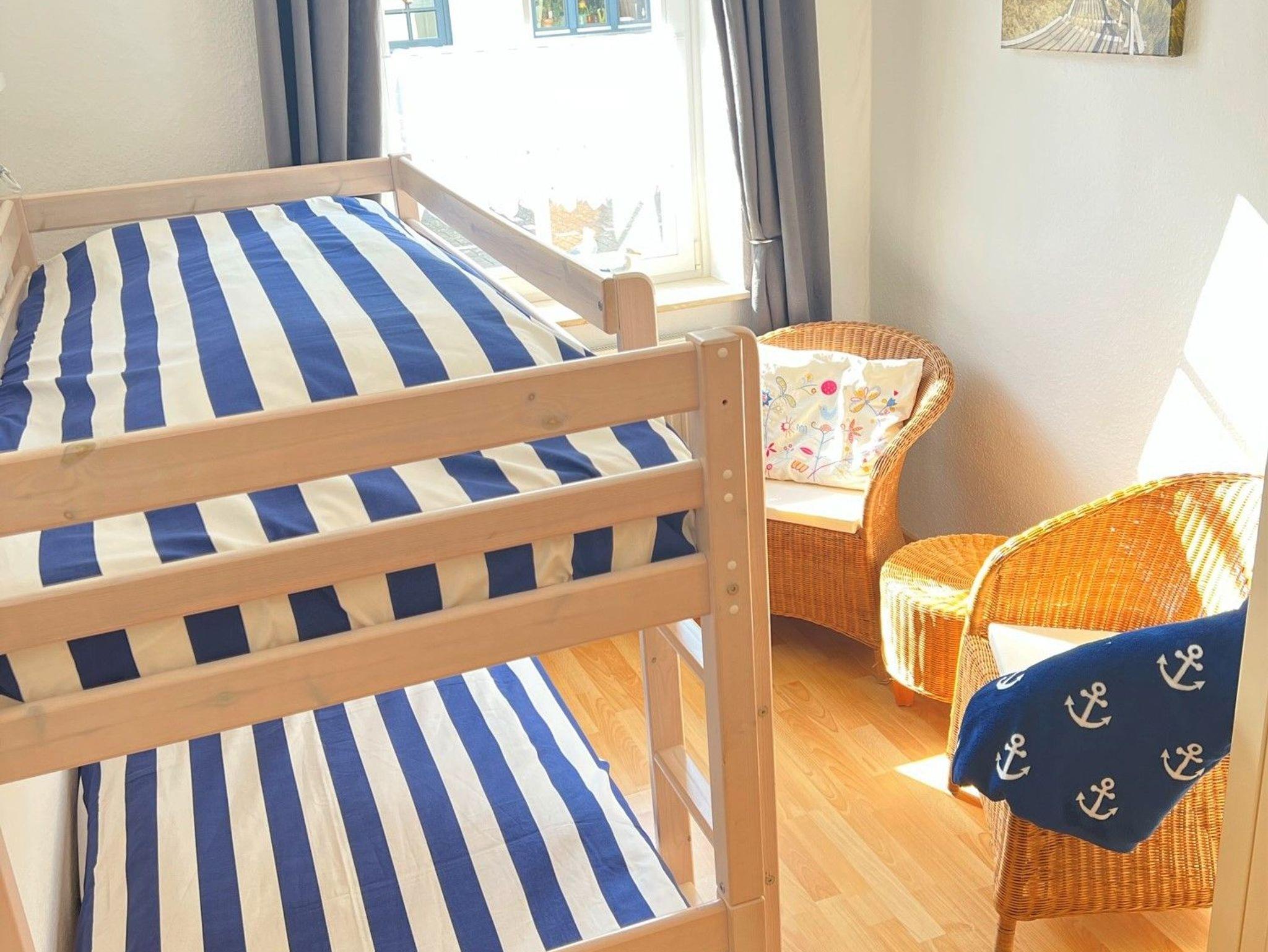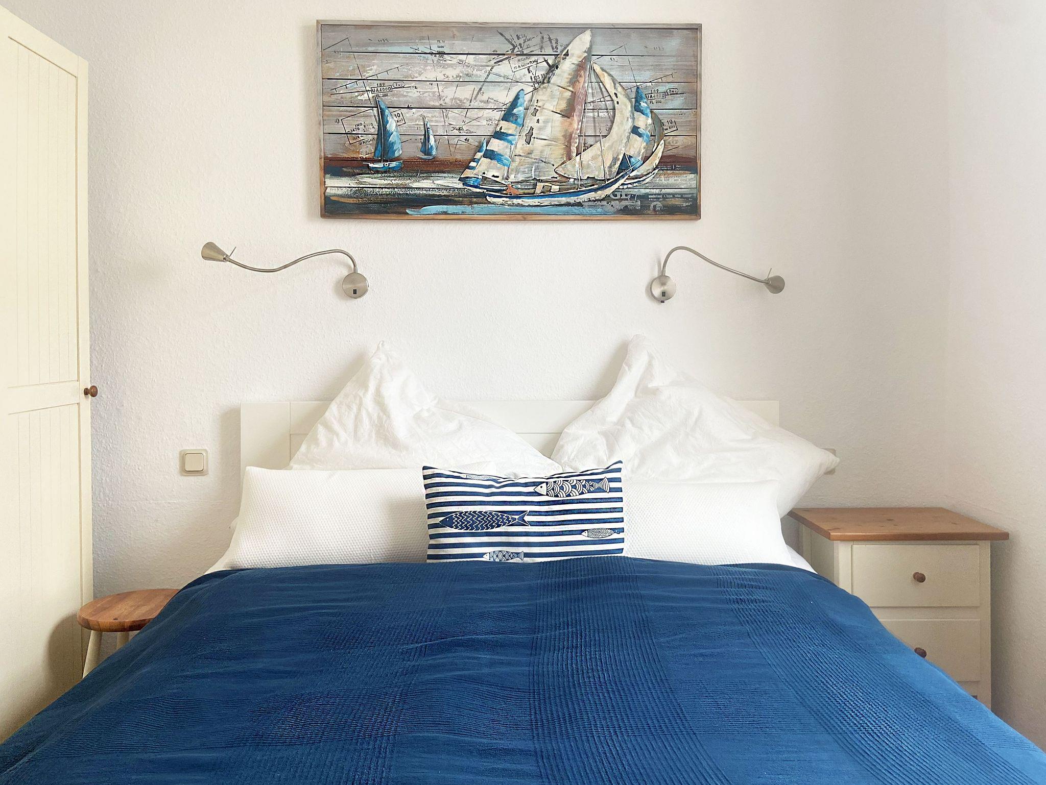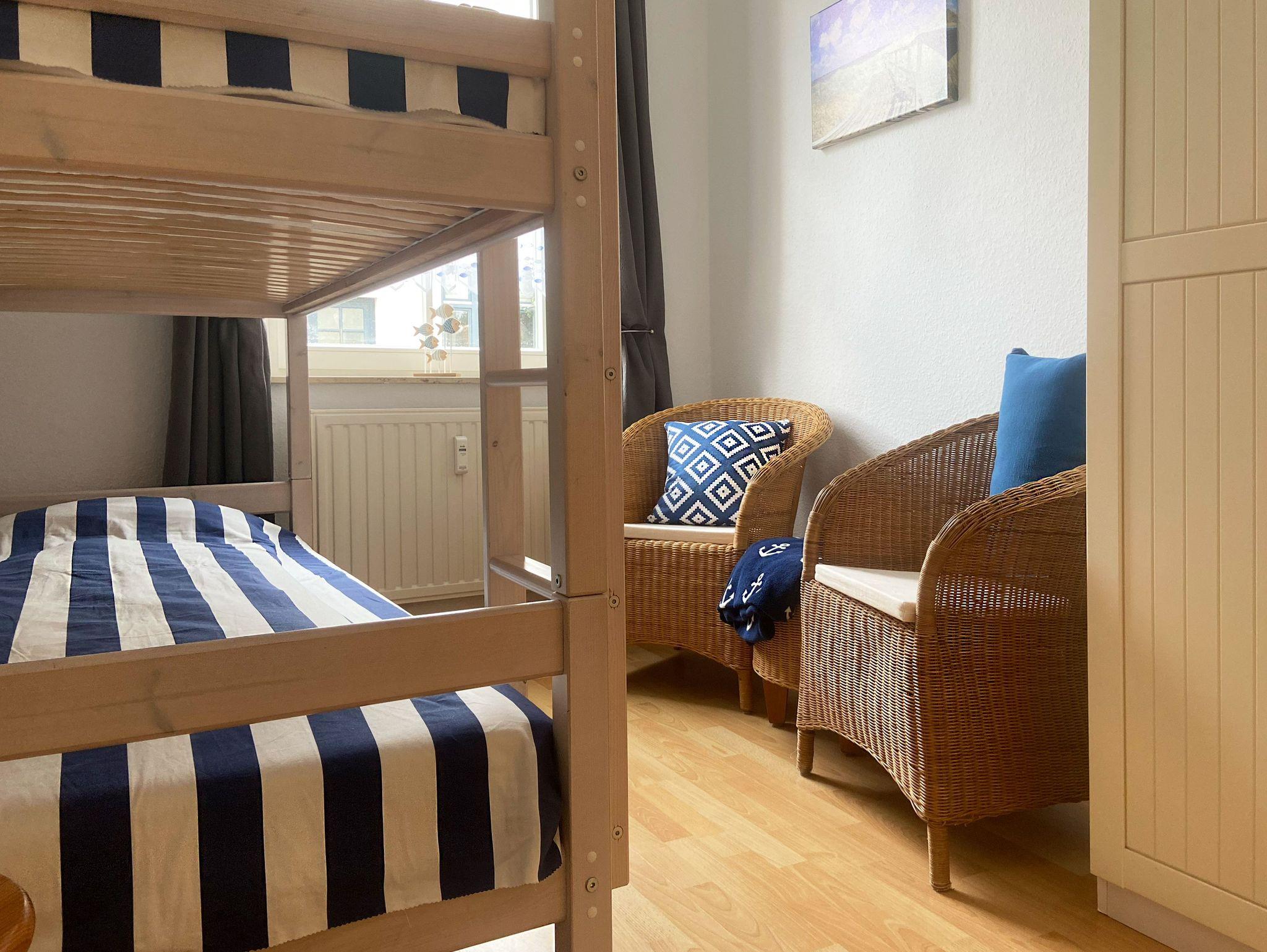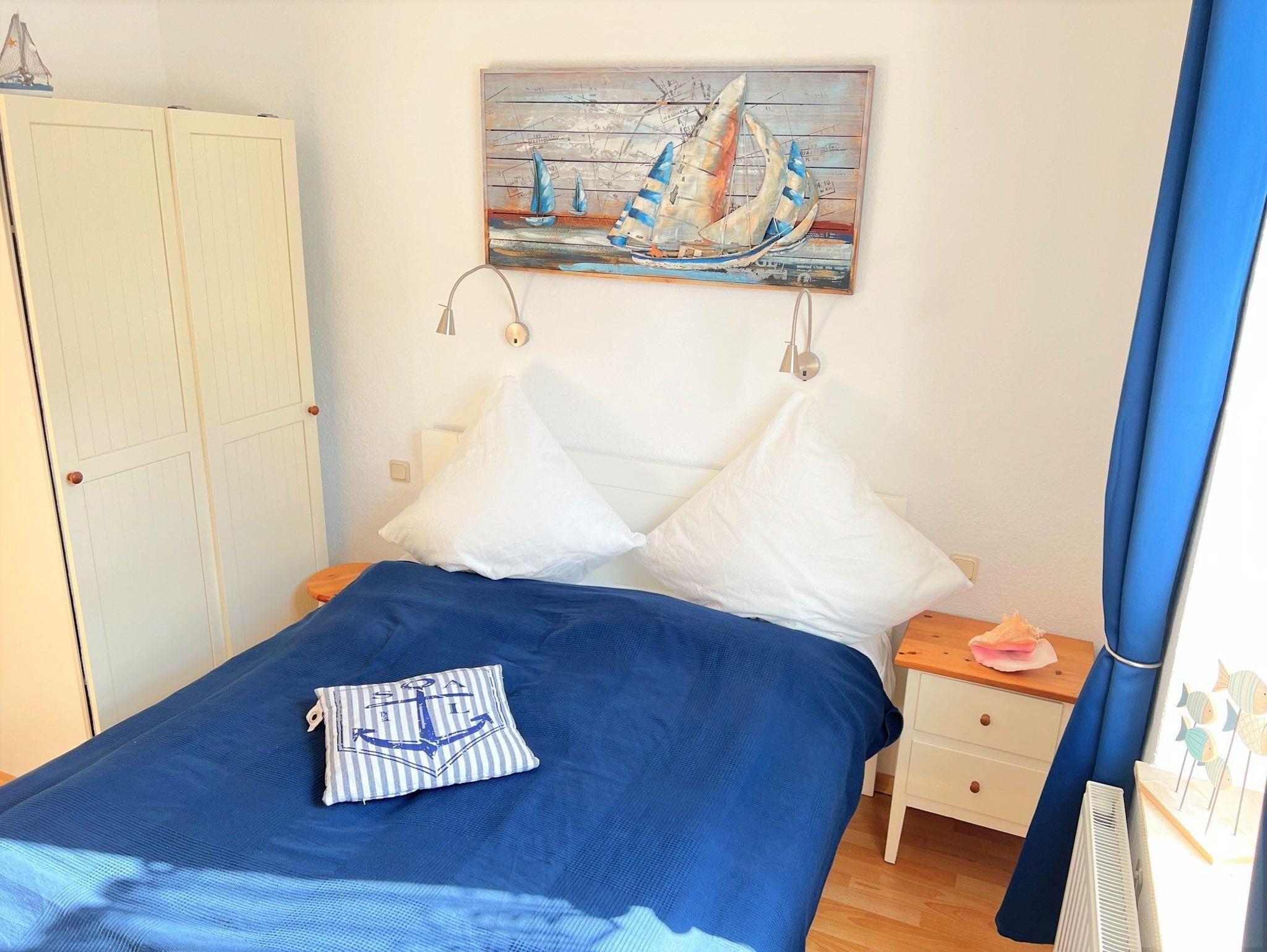Im Schlafzimmer befindet sich ein Doppelbett mit zwei Matratzen (je 80 cm x 200 cm), die als hart empfunden werden.