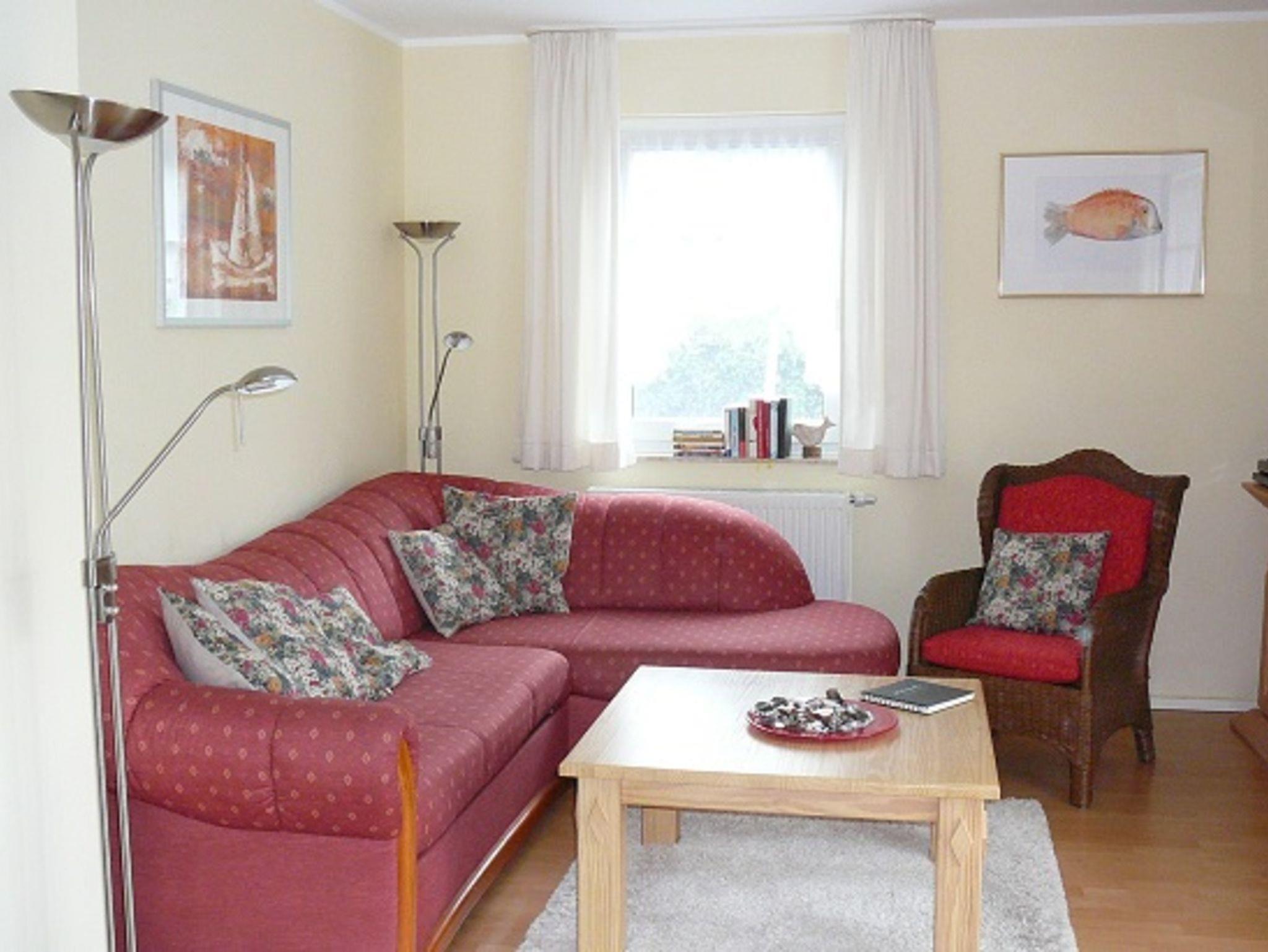 Diese gemütliche Nichtraucher-Ferienwohnung (56 qm, 2 1/2 Zimmer - das halbe Zimmer ist ohne Fenster!) liegt in einer gepflegten, ruhigen Ferienwohnanlage, ebenerdig und ist im Landhausstil eingerichtet. Ca. 5 - 8 Minuten gehen Sie durch die Salzwiesen zum Strand, Pkw-Einzelstellplatz direkt neben der Wohnung, Terrasse mit Gartenanteil, Gartenmöbel sind vorhanden. Zum Bäcker sind es ca. 5 Minuten, zum Ortszentrum und zur Seebrücke ca. 10 - 15 Minuten und zum Strand ca. 5 Minuten.