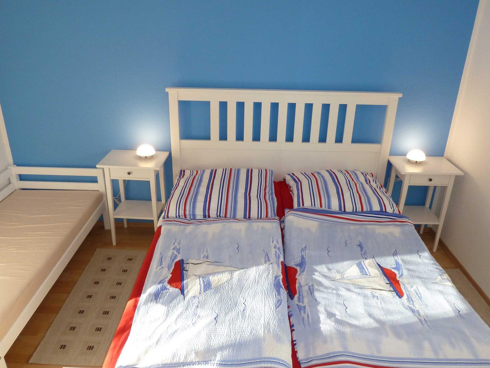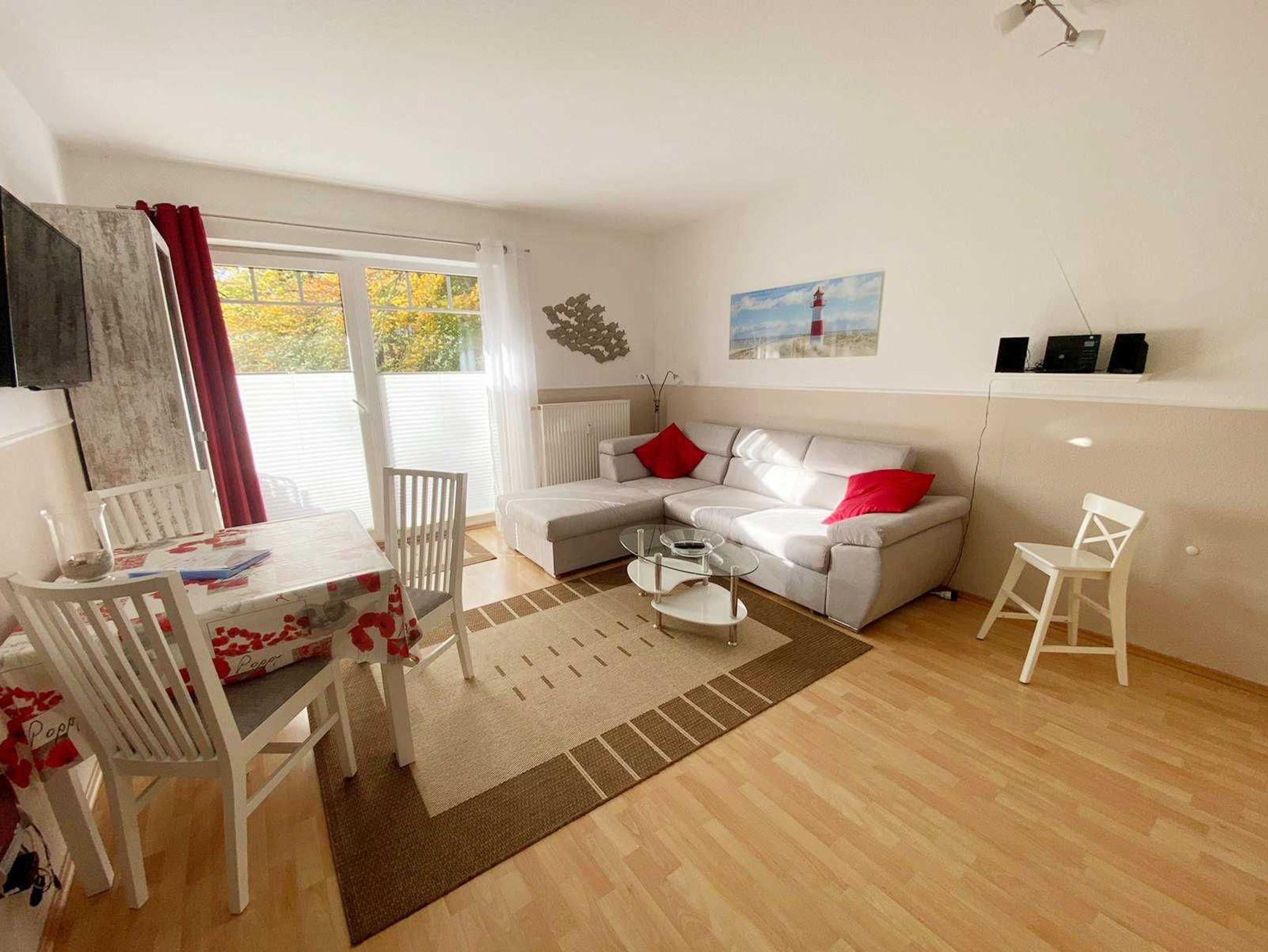 Nur 350m vom Strand entfernt liegt diese gemütlich und modern eingerichtete 2-Raum-Wohnung im 1. Obergeschoss mit ca. 48 m² Wohnfläche und einem sonnigen Südbalkon. Die sehr helle- und familienfreundliche Wohnung kann mit bis zu 4 Personen (max. 3 Erw. + 1 Kleinkind) genutzt werden. Ein separates Schlafzimmer und eine 1,30x2,15 m große Schlafcouch, bieten Platz für 4 Erwachsene. Praktisch erreichbar befindet sich vor dem Objekt ein abschließbarer Außenabstellraum, der Platz für Fahrräder o. ä. bietet. Sie können auch die zwei 28er Citybikes nutzen, diese stehen Ihnen kostenfrei zur Verfügung. Der Wohnung ist ein kostenloser Stellplatz Nr. 17 zugeordnet. WLAN steht Ihnen ebenso kostenlos zu Verfügung.