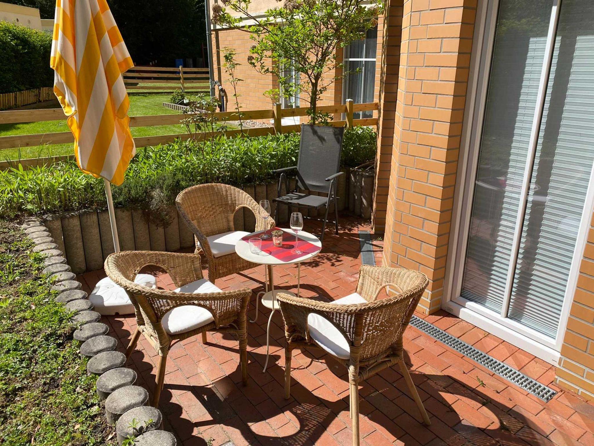 Wald oder Strand? Was ist Ihnen lieber? In unseren Ferienwohnungen im Bucheneck können sie beides genießen. Der Strand wäre von hier aus nur 600m entfernt, den Wald haben sie gleich vor der Nase. Hier liegt diese gemütlich und modern eingerichtete 3-Raum-Maisonetteferienwohnung im 1. Obergeschoss mit ca. 71 m² Wohnfläche und einem sonnigen Südbalkon und einer sonnigen Ostterrasse. Die sehr helle und freundliche Wohnung kann mit bis zu 3 Personen genutzt werden. Zwei separates Schlafzimmer bieten hier Platz dafür. Zwei Badezimmer mit Dusche und Badewanne gehören zum entspannen dazu. Praktisch erreichbar befindet sich in dem Objekt ein Fahrradkeller und ein Trockner. Der Wohnung ist ein kostenloser Stellplatz Nr. 20 vor der Tür zugeordnet.