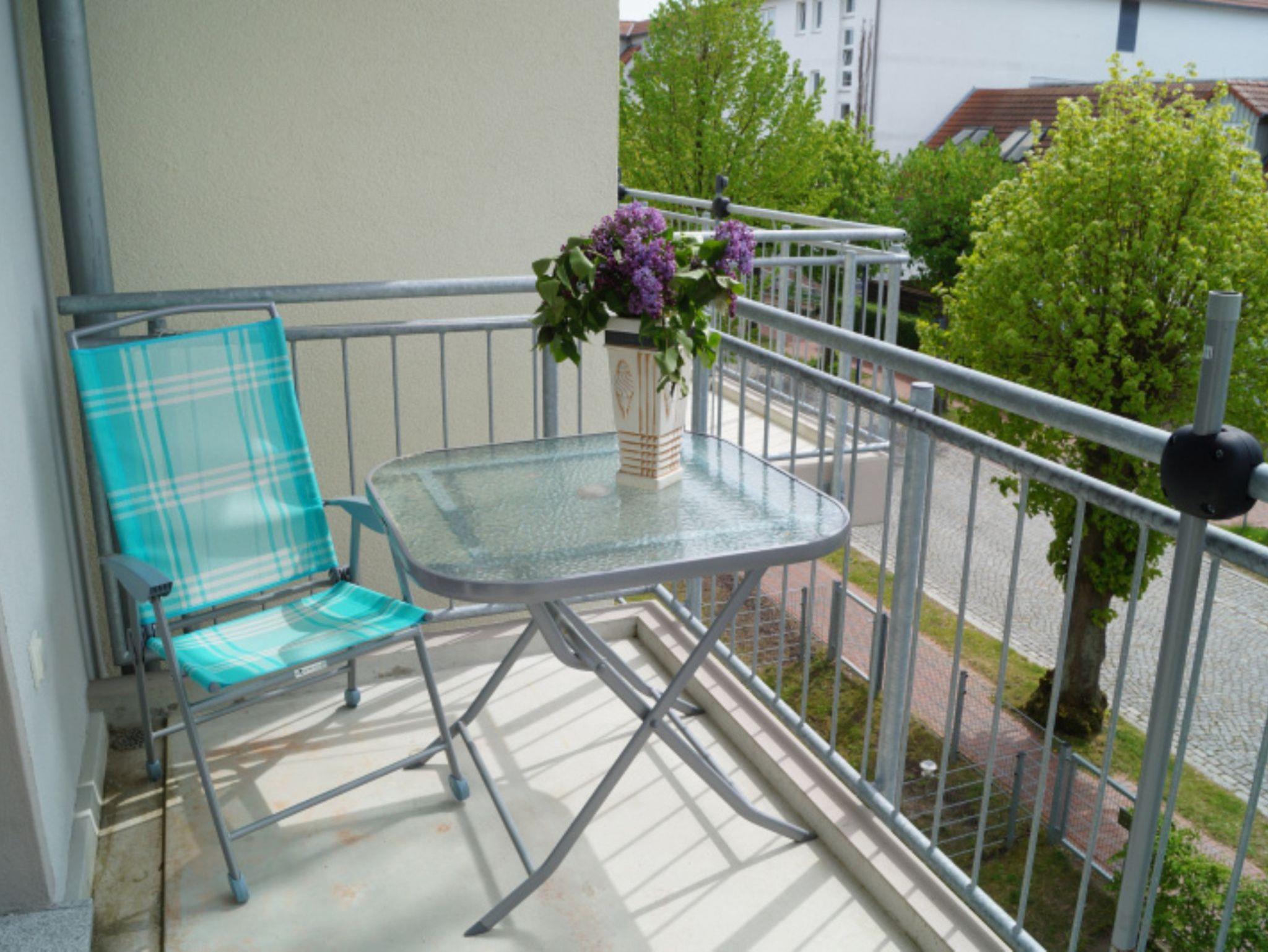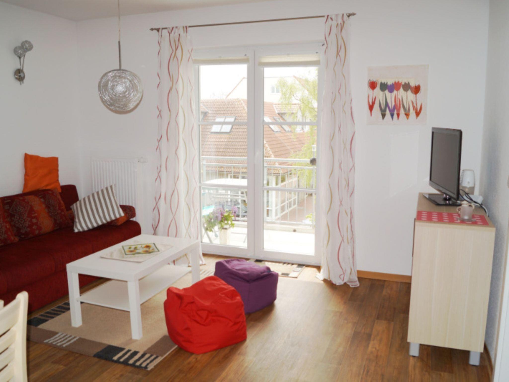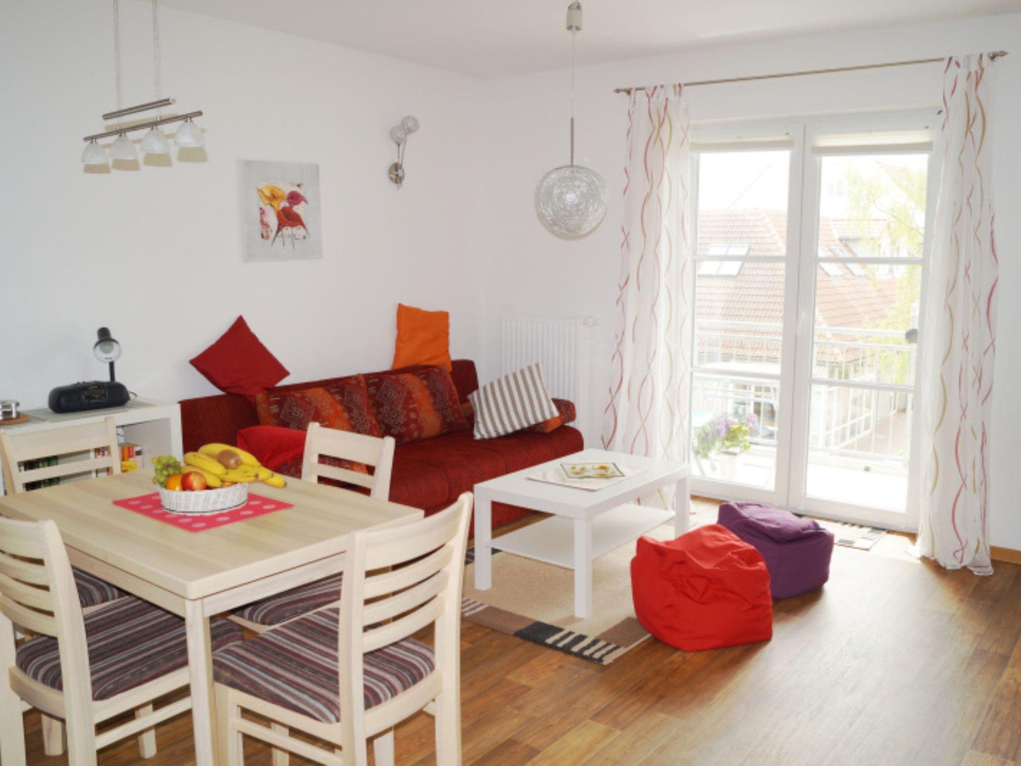 Moderne Ferienwohnung Karoline im Fürstenhof in Graal-Müritz, nur 450 m vom Strand entfernt, mit Balkon und Parkplatz.