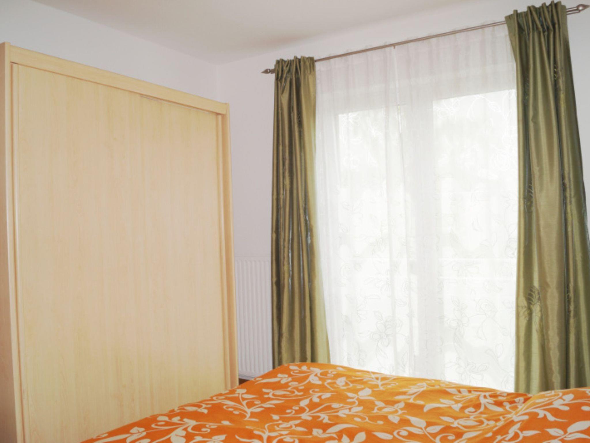 Das Schlafzimmer ist mit einem Doppelbett, 2 Nachttischen, einem Wandklappbett und einem Kleiderschrank ausgestattet.