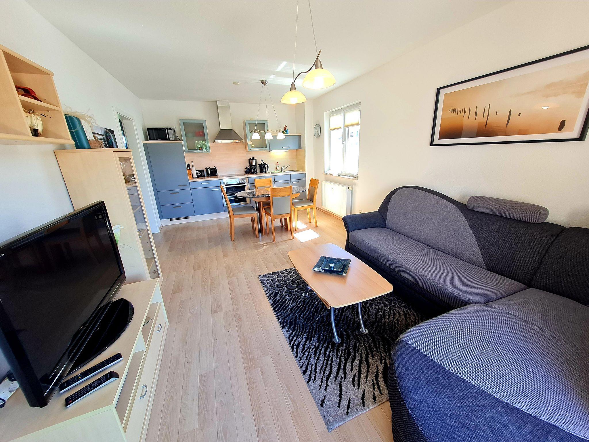 Genießen sie ihren Urlaub in der wunderschönen Anlage Strandwiese. Nur 500m vom Strand entfernt liegt diese gemütlich und modern eingerichtete 2. Raum-Wohnung im 2. Obergeschoss mit ca. 50 m² Wohnfläche und einem sonnigen Westbalkon. Die sehr familienfreundliche Wohnung kann mit bis zu 3 Personen genutzt werden. Ein separates Schlafzimmer und eine 1,40x2,00 m große Schlafcouch, bieten Platz für 3 Personen. Praktisch erreichbar befindet sich ein Außenabstellraum für Fahrräder o. ä. vor dem Objekt. Der Wohnung ist der kostenlose Stellplatz Nr. 32 zugeordnet.