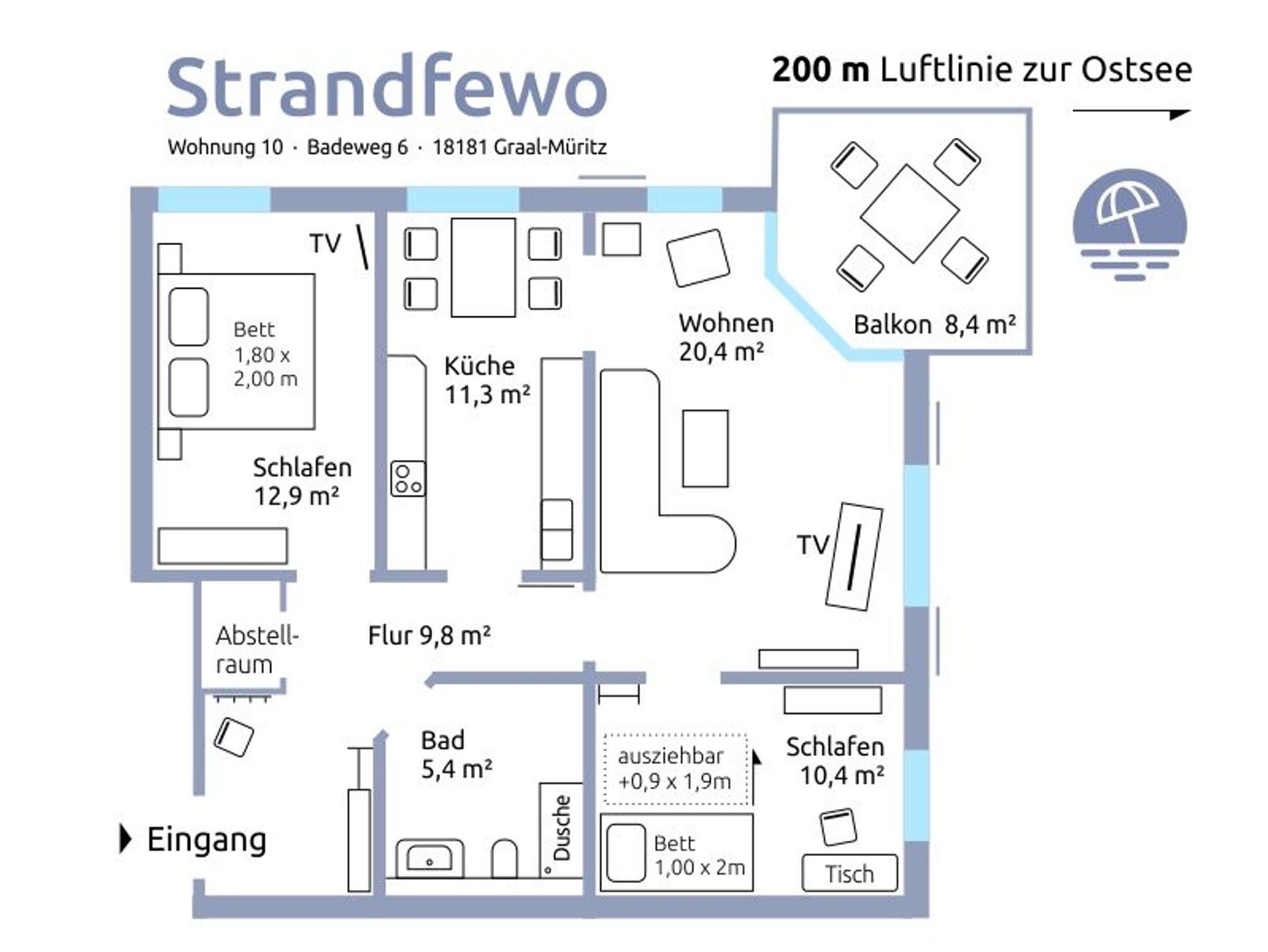 Moderne Ferienwohnung nur 100 m vom Strand in Graal-Müritz mit Balkon und kostenlosem WLAN.