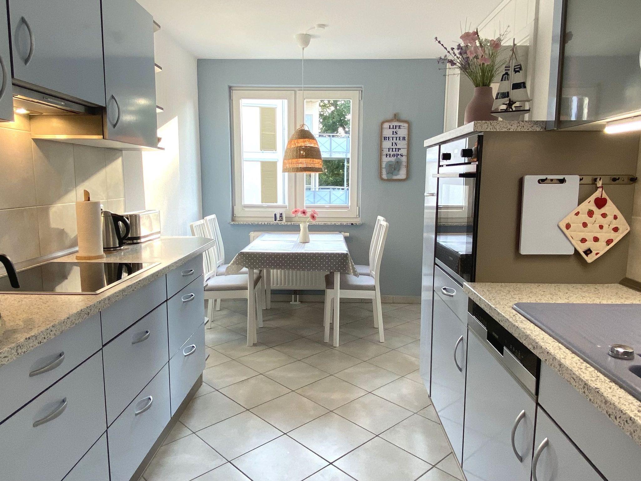 • Küche: Vollausgestattete Einbauküche, Esstisch mit 4 Stühlen, Ceranfeld, Kühl-Gefrierkombi, Backofen, Geschirrspüler, Toaster, Kaffeemaschine, Wasserkocher, Eierkocher, Sandwich-Maker, Backutensilien (Mixer, Backformen)