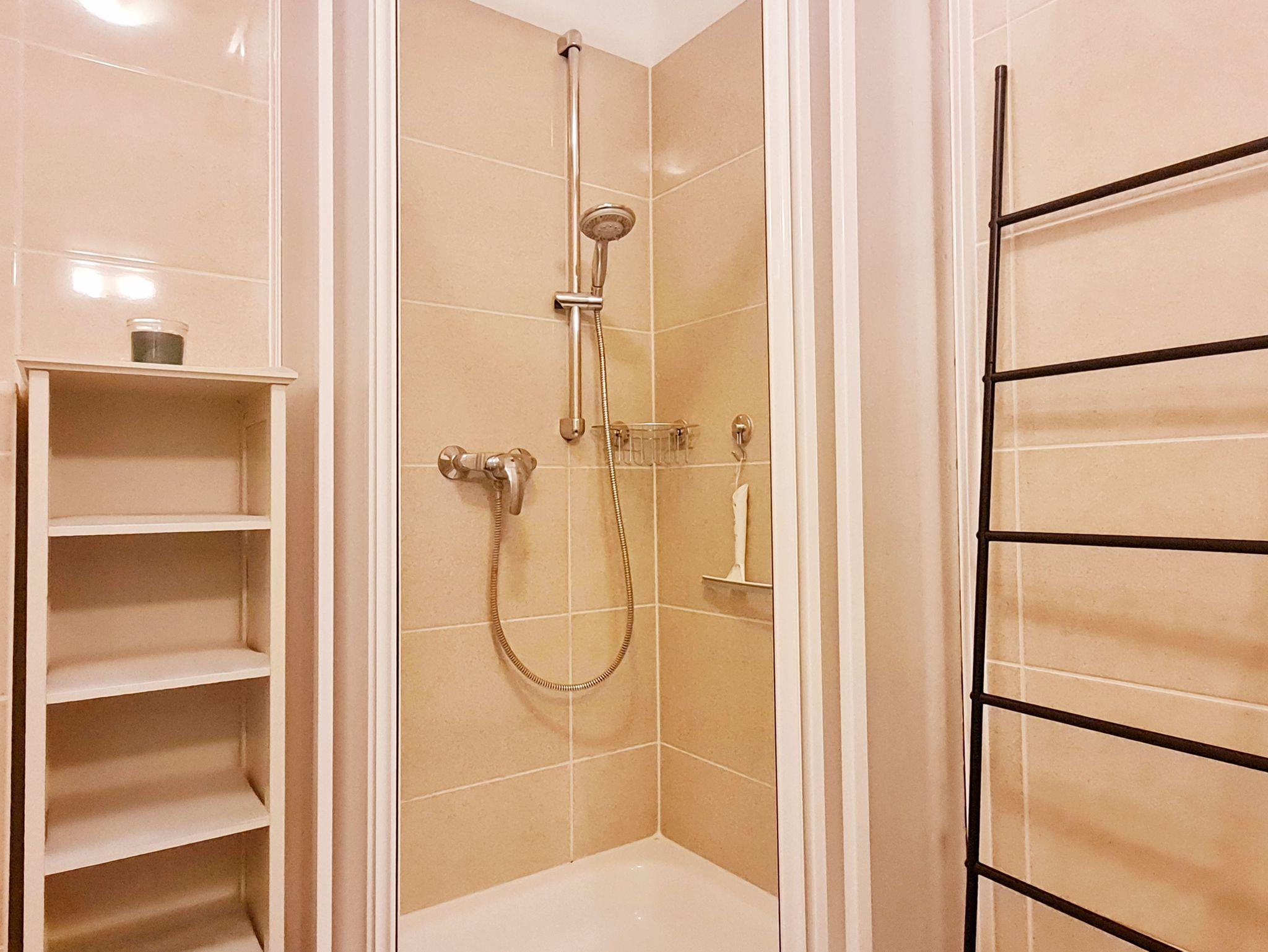 • Bad: ohne Fenster, Dusche, Waschbecken, Toilette, Spiegel, Unterschrank Waschbecken, Regal, Waschmaschine, Fön