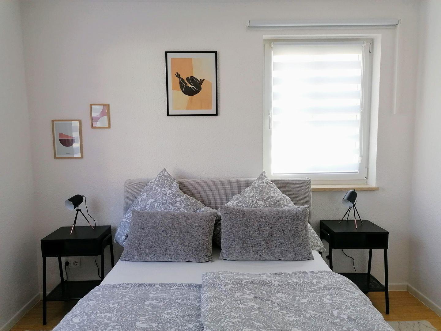 Im Schlafzimmer befindet sich ein Doppelbett (140 cm x 200 cm, durchgehende Matratze) und an den Fenstern ist ein Rollo zum Verdunkeln.