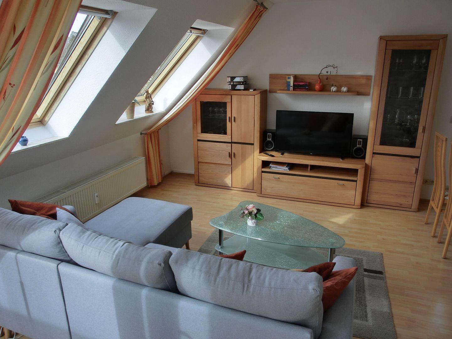 • Heller Wohnbereich mit gemütlicher Sitzecke, SAT-TV, DVD-Player und Radio