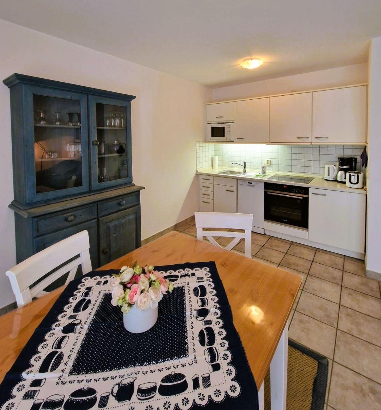 Strandnahe Ferienwohnung in Zingst mit Terrasse, moderner Küche und Schlafcouch für bis zu vier Personen.
