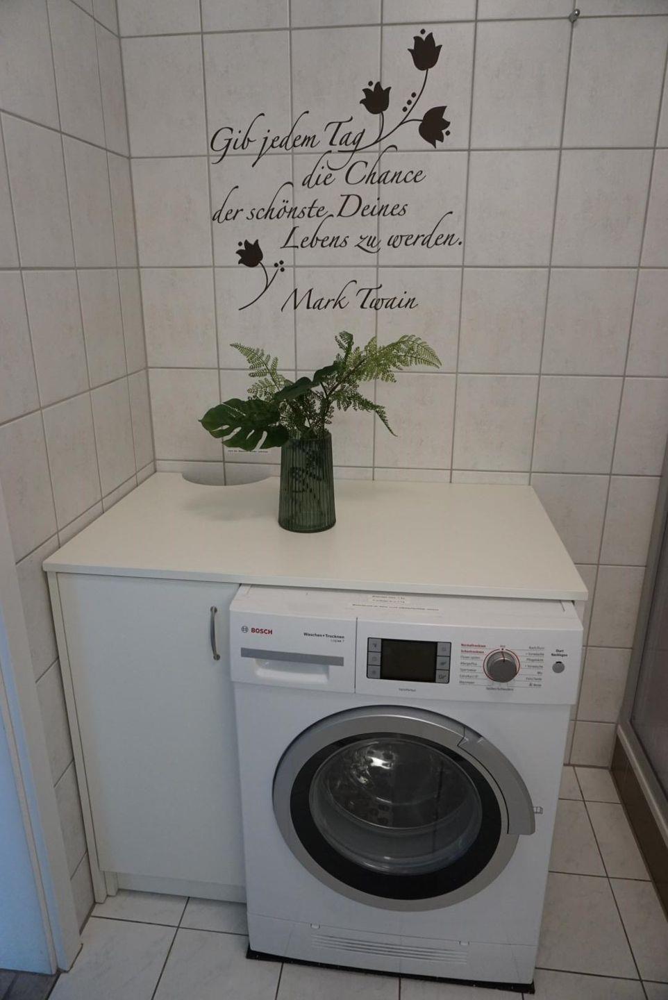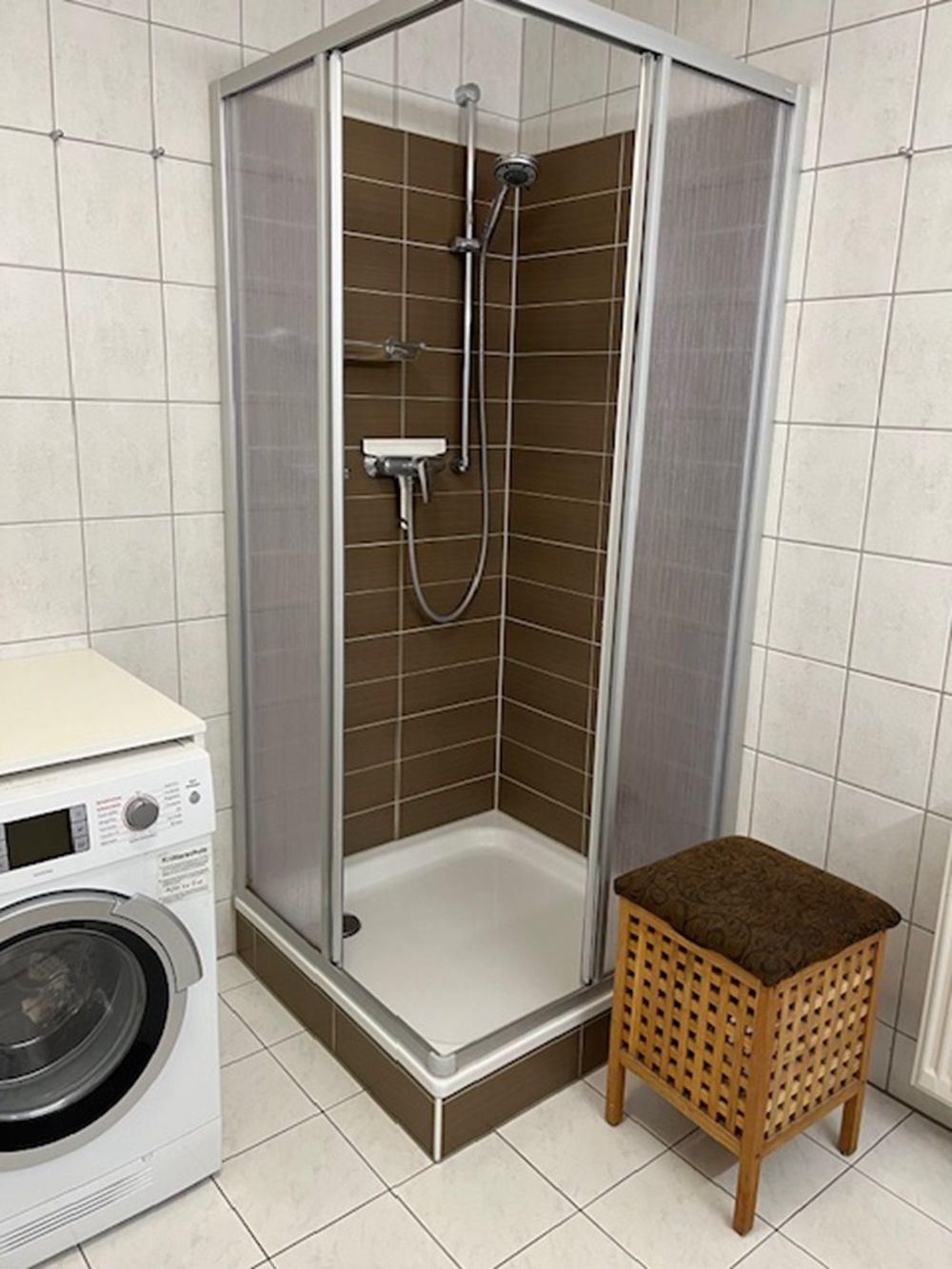 Wickelkommode, Bad mit Dusche/WC, Waschmaschine mit Trockner, ein