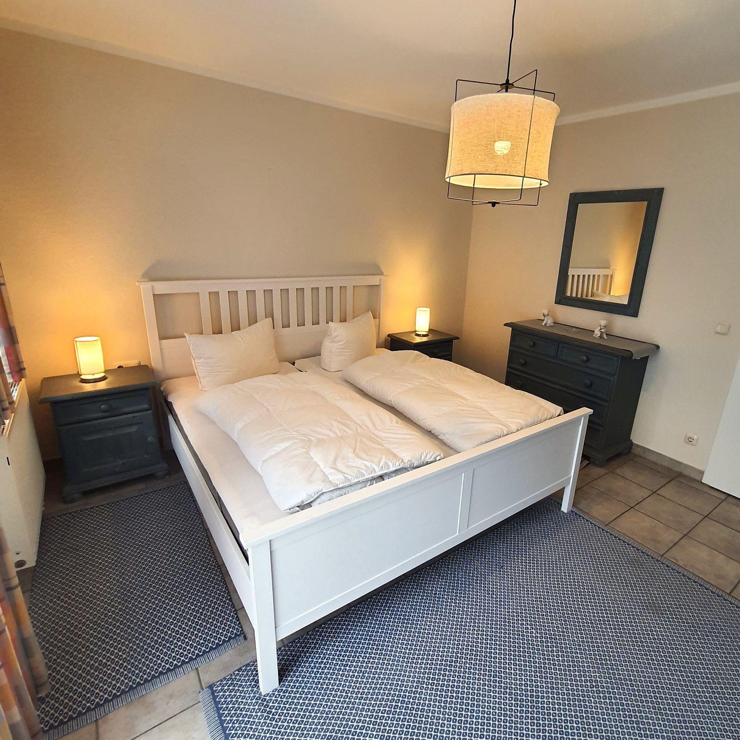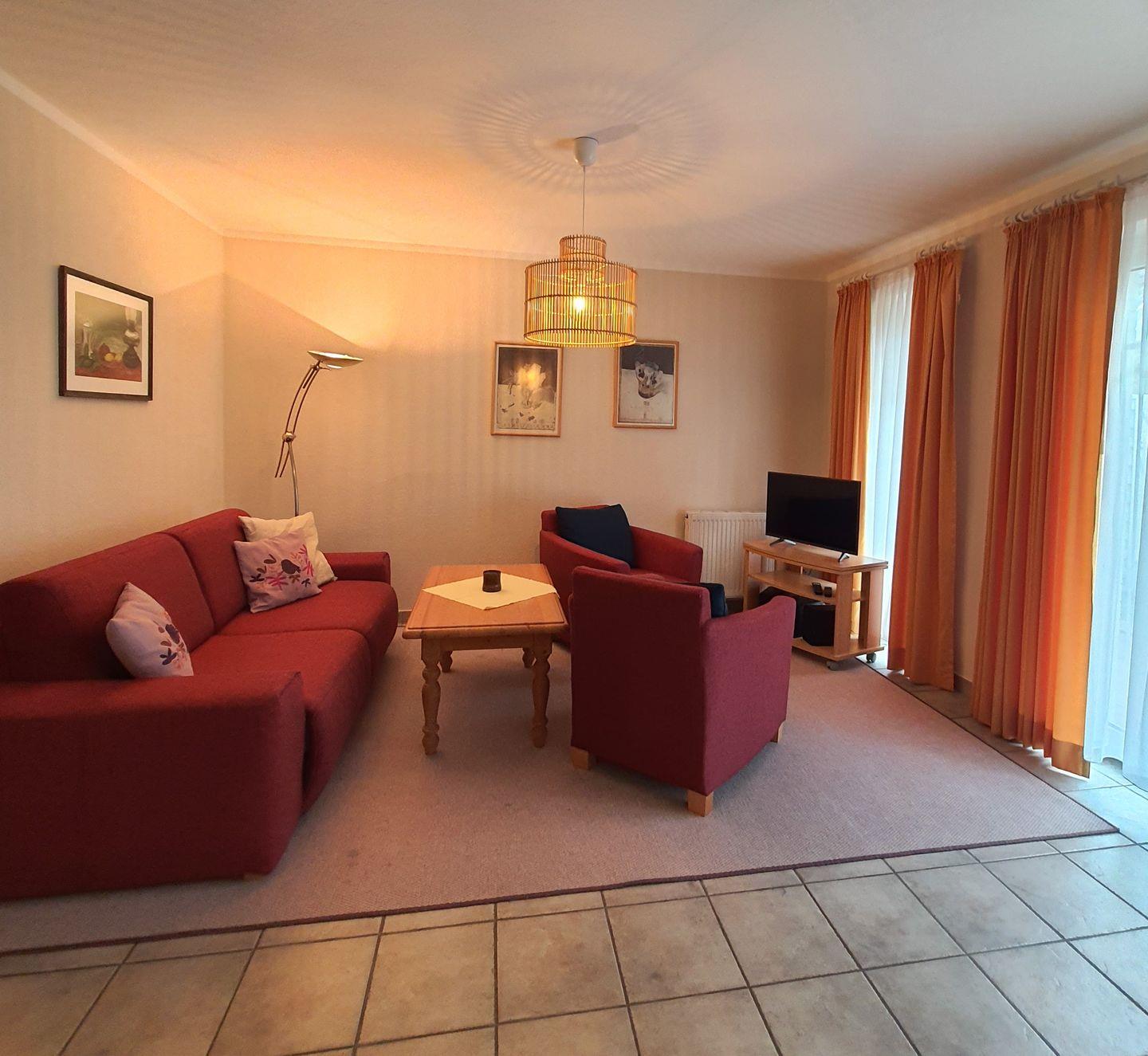 Ferienwohnung in einem Appartmenthaus, nur 150m zum Strand, ca.55 m² groß, Erdgeschoss mit Terrasse, im Wohnzimmer befindet sich eine Couch mit Schlaffunktion für die 3 und 4 Personen, die offene Küchenzeile ist komplett ausgestattet ( E-Herd ohne Backofen). Im Schlafzimmer befindet sich ein Doppelbett (1,80m x 2,00 m), bodentiefe Fenster mit Aussenjalousie im Wohnzimmer und Schlafzimmer lassen viel Licht in die Wohnung. Im innenliegenes Bad befinden sich Dusche/WC.