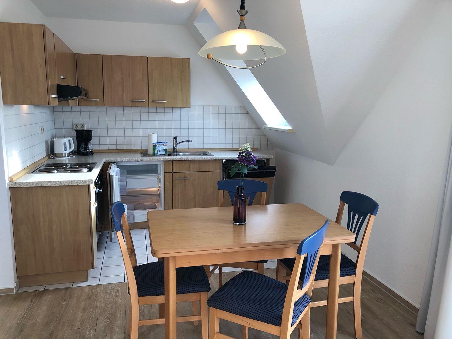 Gemütliche Ferienwohnung in Zingst mit Balkon, moderner Küche und Badewanne, ideal für erholsame Tage an der Ostsee.