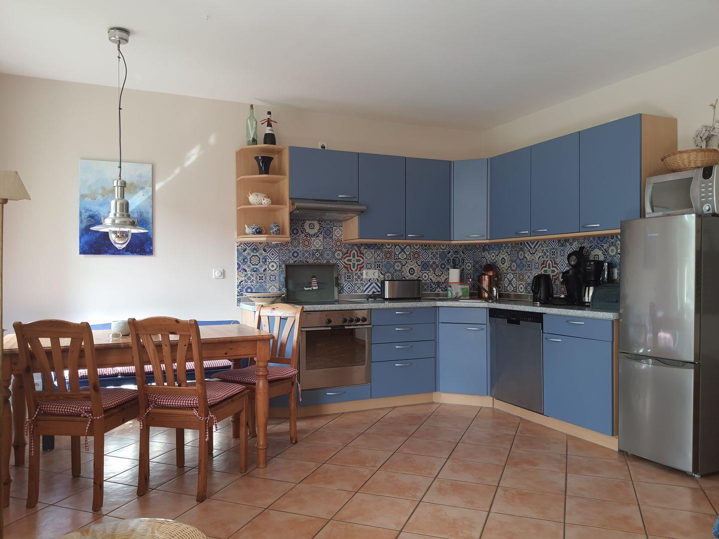 Wohnzimmer mit kompl. Küchenzeile, Mikrowelle, SAT-TV, 1 Schlafzimmer mit Ehebetten, 1 Schlafzimmer mit Boxspringbett, Dusche/WC, Waschmaschine,