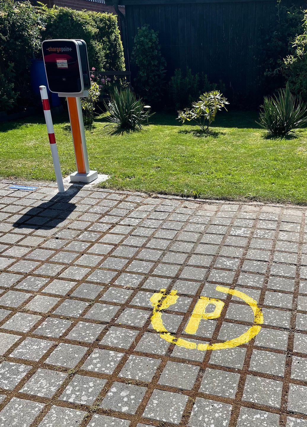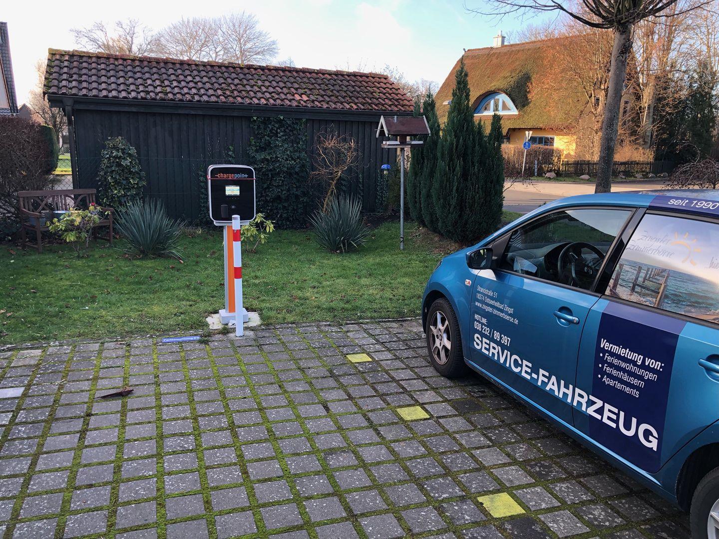 es ist eine kostenpflichtige e-Ladesäule im Bereich der Parkplätze vorhanden