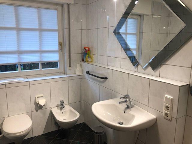 Die große, komfortable und moderne Ferienwohnung im Erdgeschoss ist ruhig gelegen. Im großzügigen Wohnraum mit Essbereich befindet sich ein großer LED-Fernseher, sowie eine komplett ausgestattete Küche mit Spülmaschine. Kostenfreies WLAN. Das Schlafzimmer ist mit einem Doppelbett und einem zusätzlichen Waschbecken ausgestattet. Im Badezimmer gibt es neben einer geräumigen Dusche, eine Badewanne und ein Bidet.