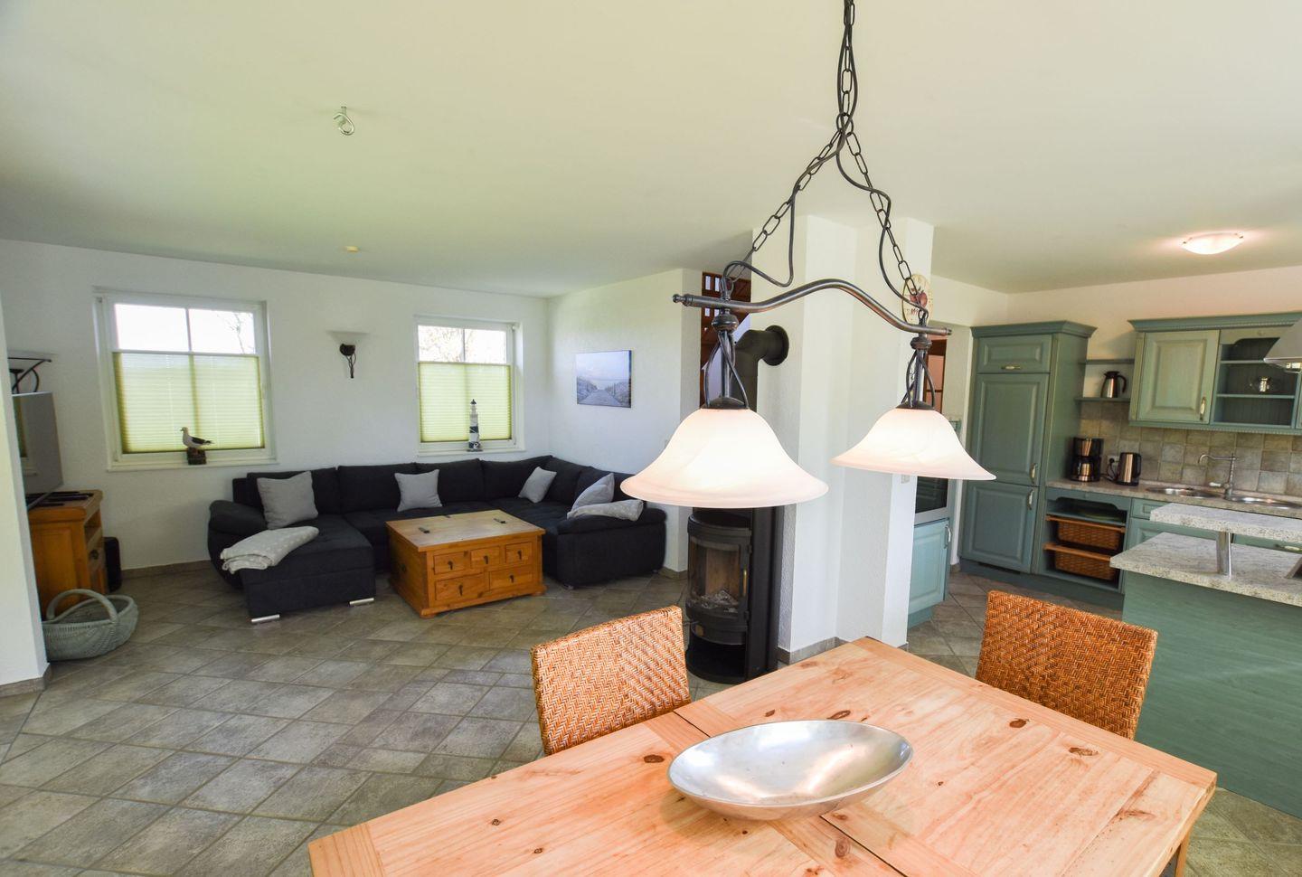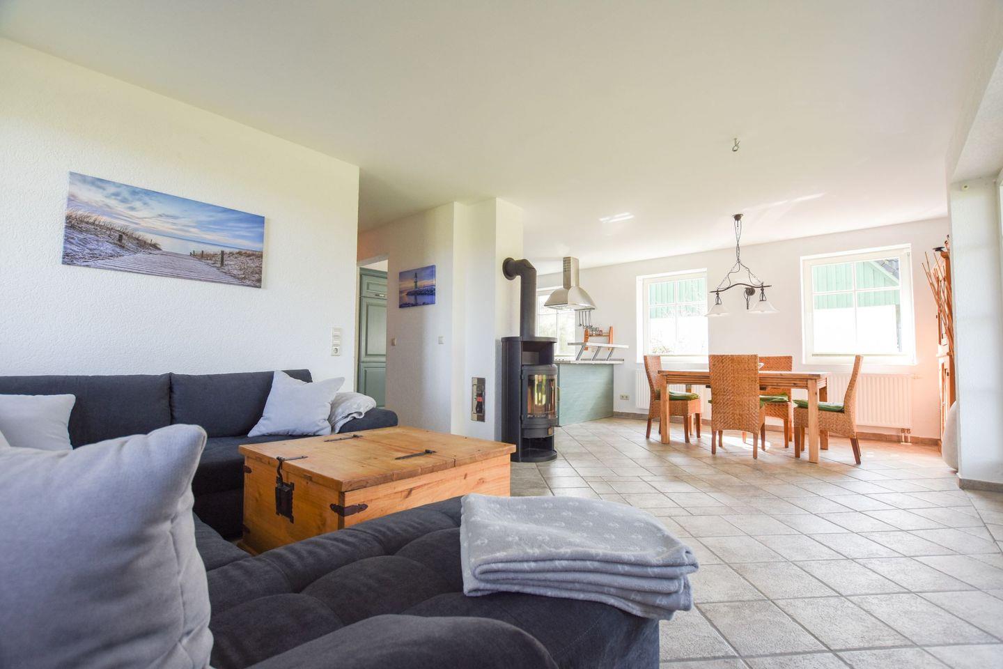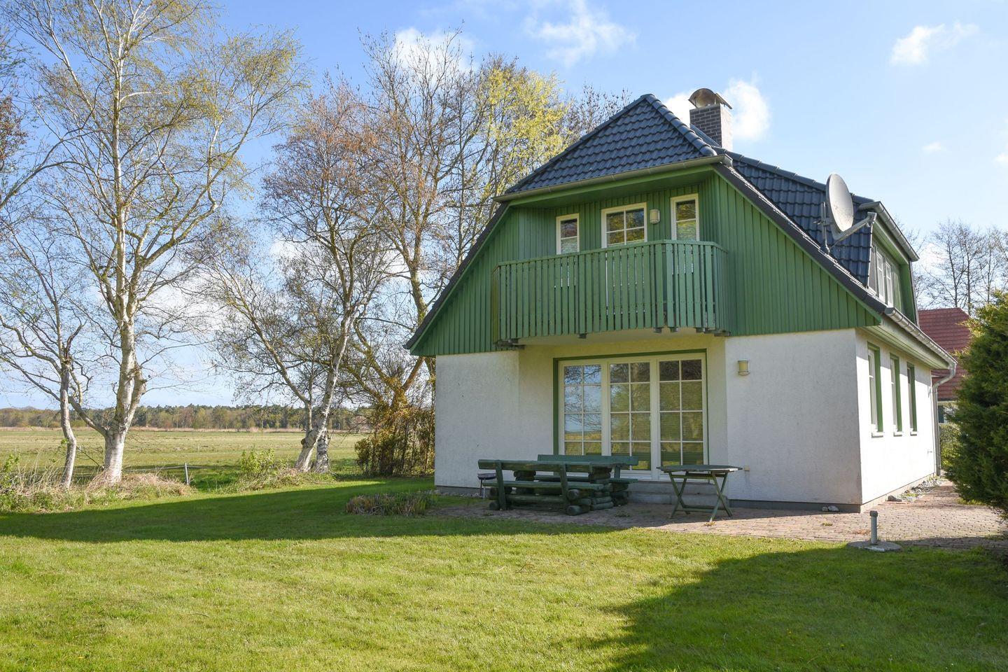 Ruhiges Ferienhaus nahe Bodden mit Kamin, Terrasse, Garten und moderner Ausstattung für erholsame Tage.