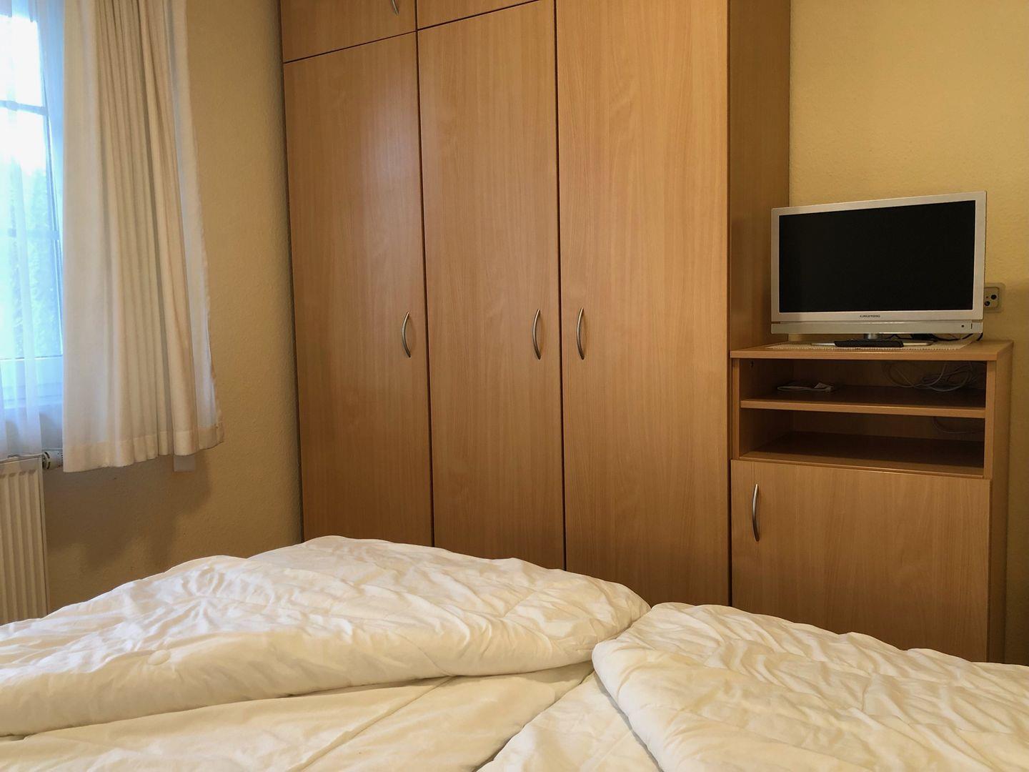 Ferienwohnung im Appartementhaus, ca.46 m² groß , Terrasse, zentral, zum Strand sind es ca. 700m, Wohnung liegt im Erdgeschoss, 1 PKW-Stellpl. Nr.2, Fahrradraum, Waschmaschine gegen Gebühr (allgemeine Nutzung) Wohnzimmer mit Schlafcouch Sat-TV, Küchenzeile (Geschirrspüler), Dusche/WC, Schlafzimmer mit Ehebett, Farb-TV, Bettwäsche und Handtücher bitte mitbringen,