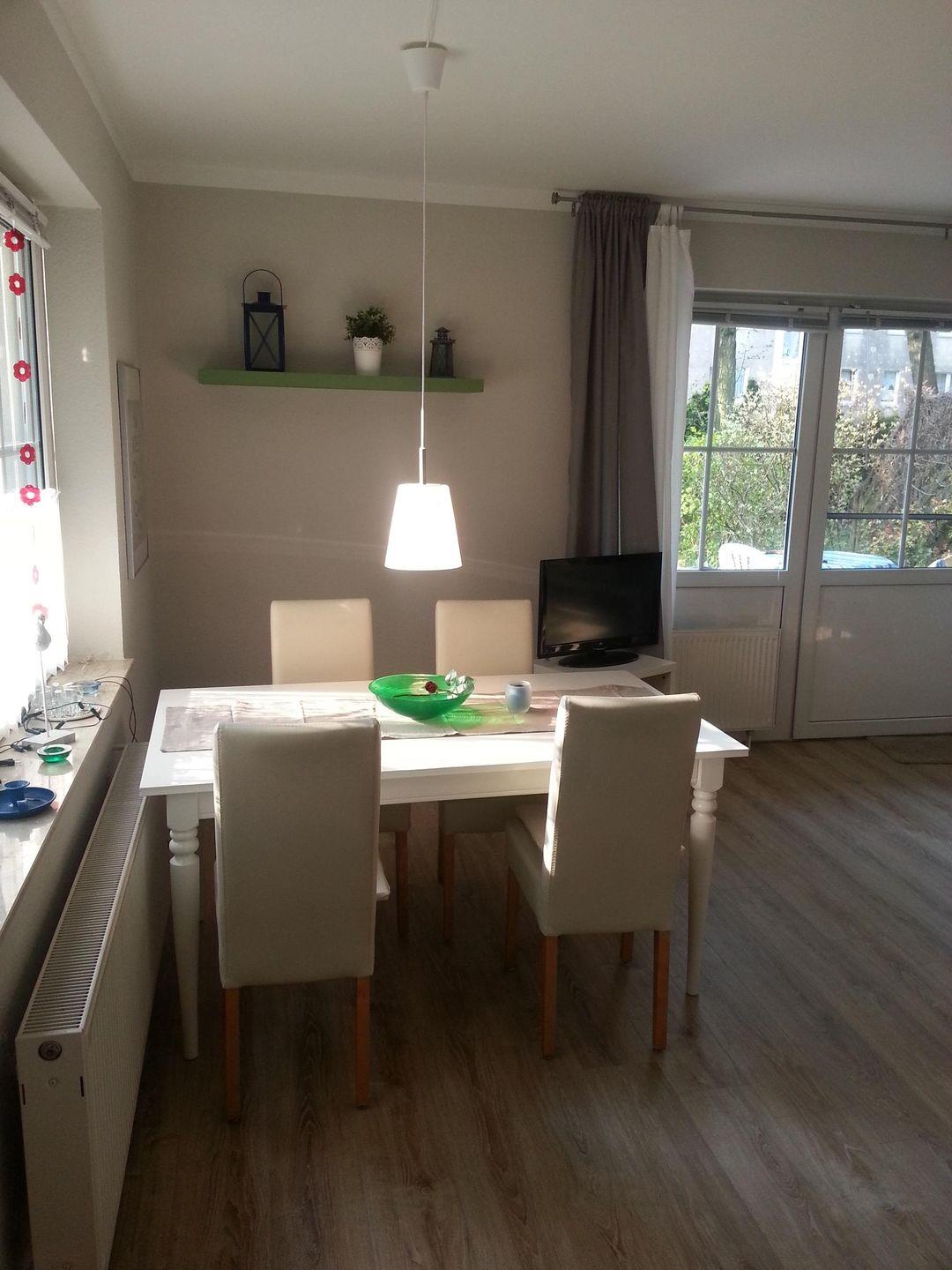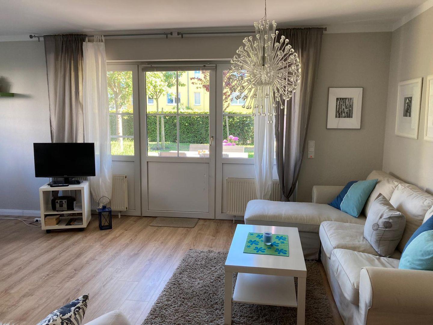 Das Wohnzimmer ist mit einer Schlafcouch für die 3. Person eingerichtet. Entspannen Sie nach einem aktiven Tag am Strand und genießen Sie Ihren Lieblingsfilm auf dem Fernseher. Das WLAN in der Wohnung sorgt dafür, dass Sie auch während Ihres Urlaubs immer in Verbindung bleiben können.