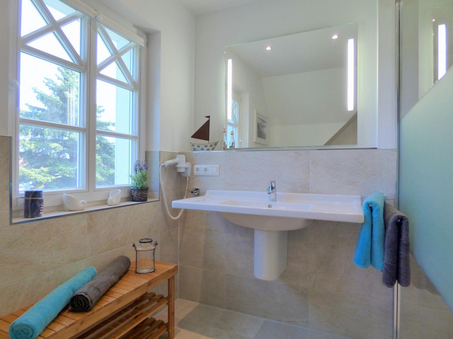 Das zweite Bad mit großer, offener Dusche bietet Freiheit auf der Etage.