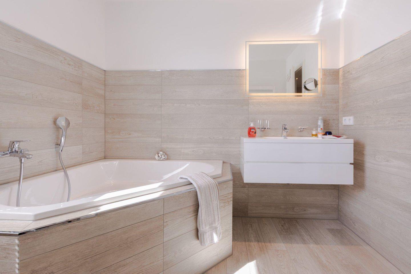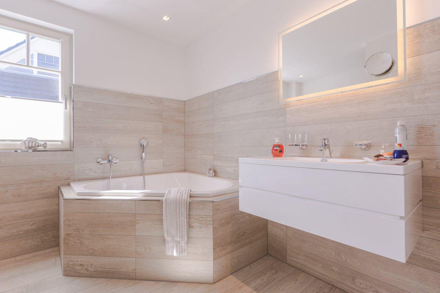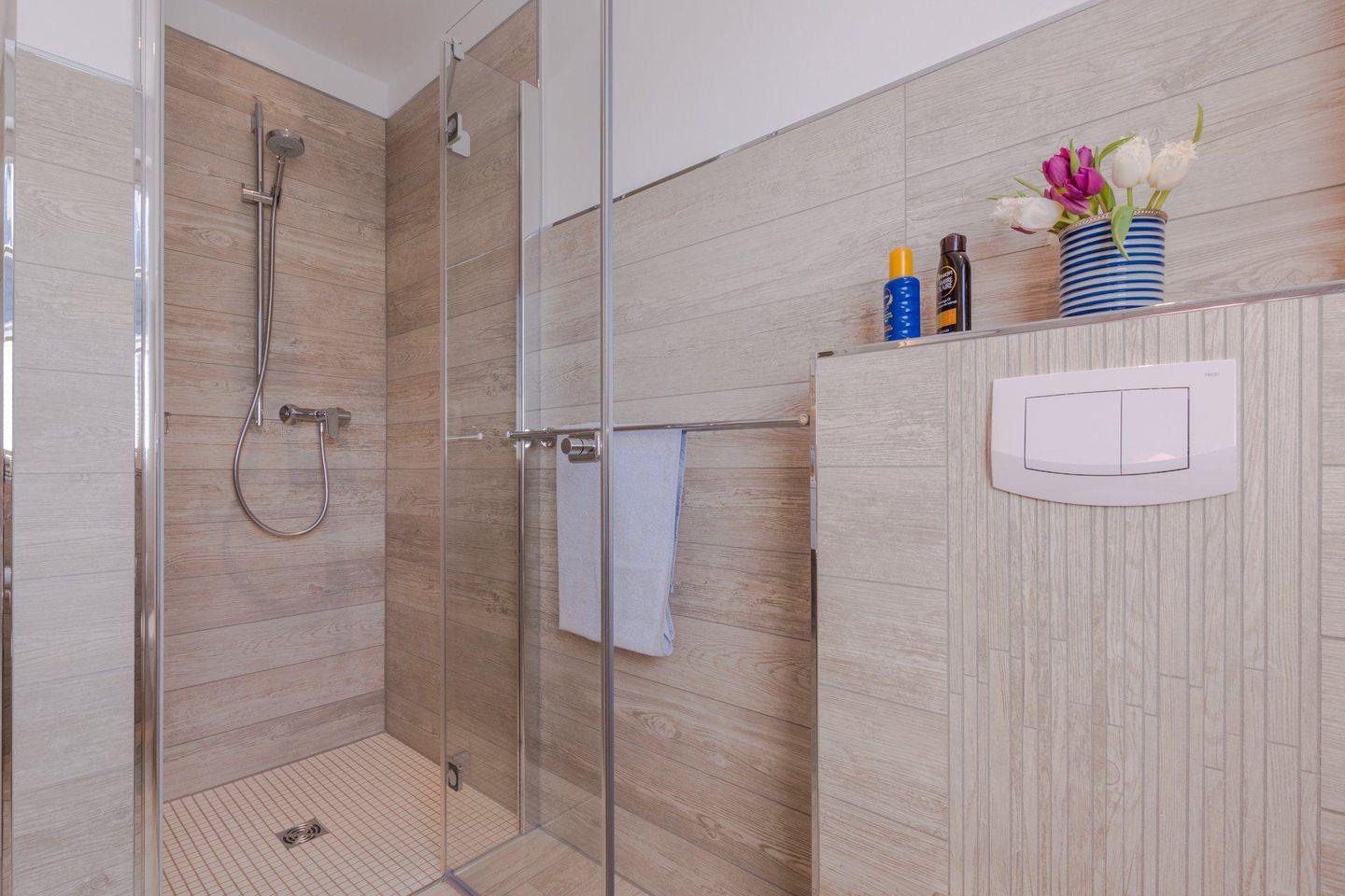 Beide Bäder haben eine Dusche, ein Bad verfügt zusätzlich über eine Badewanne.