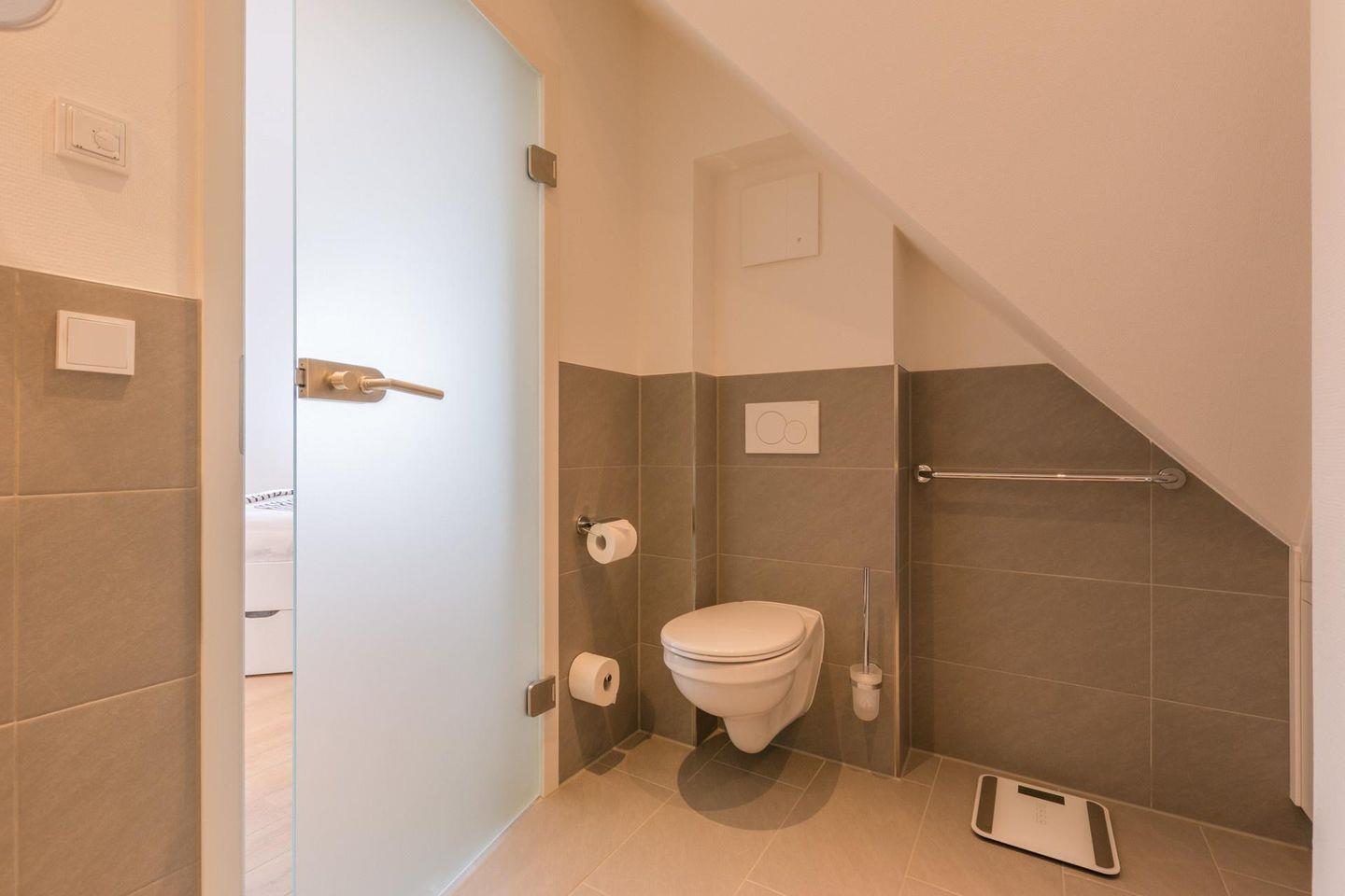 Im lichtdurchfluteten Wohnbereich finden Sie ein TV mit einer Schlafcouch als Aufbettung und ein Gäste - WC.