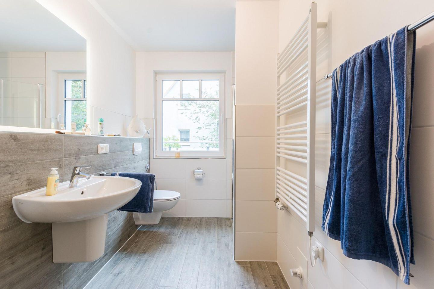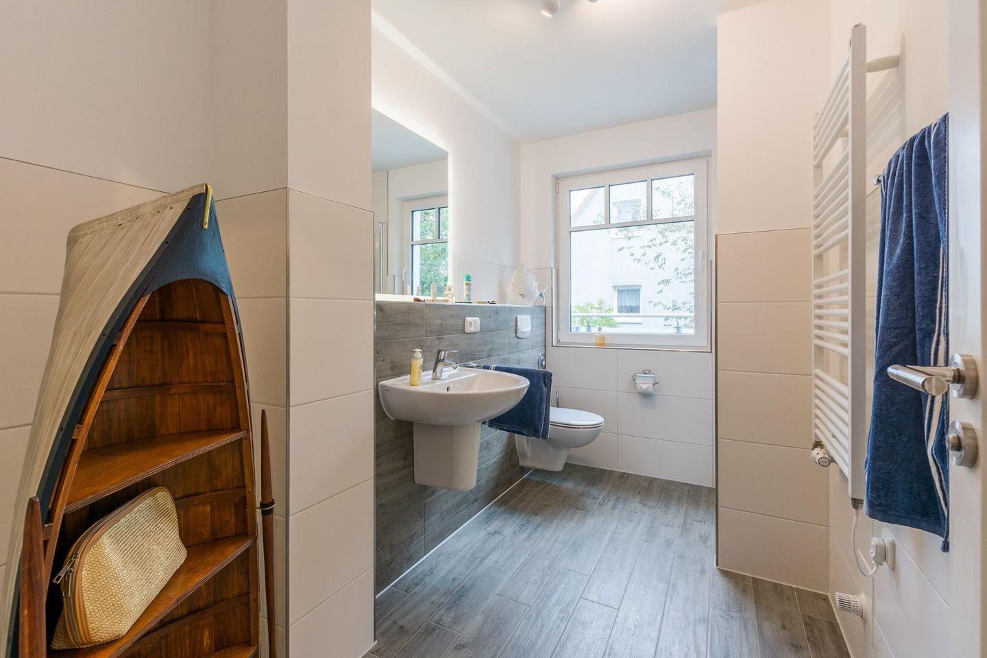 Schöne 53 m² Ferienwohnung mit Fahrstuhl hochwertig und maritim eingerichtete für 2-4 Personen in der 1.Etage eines Mehrfamilienhauses.