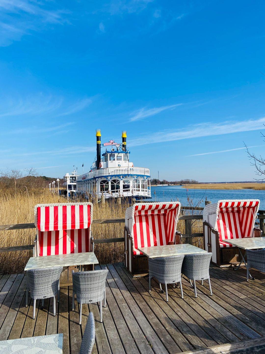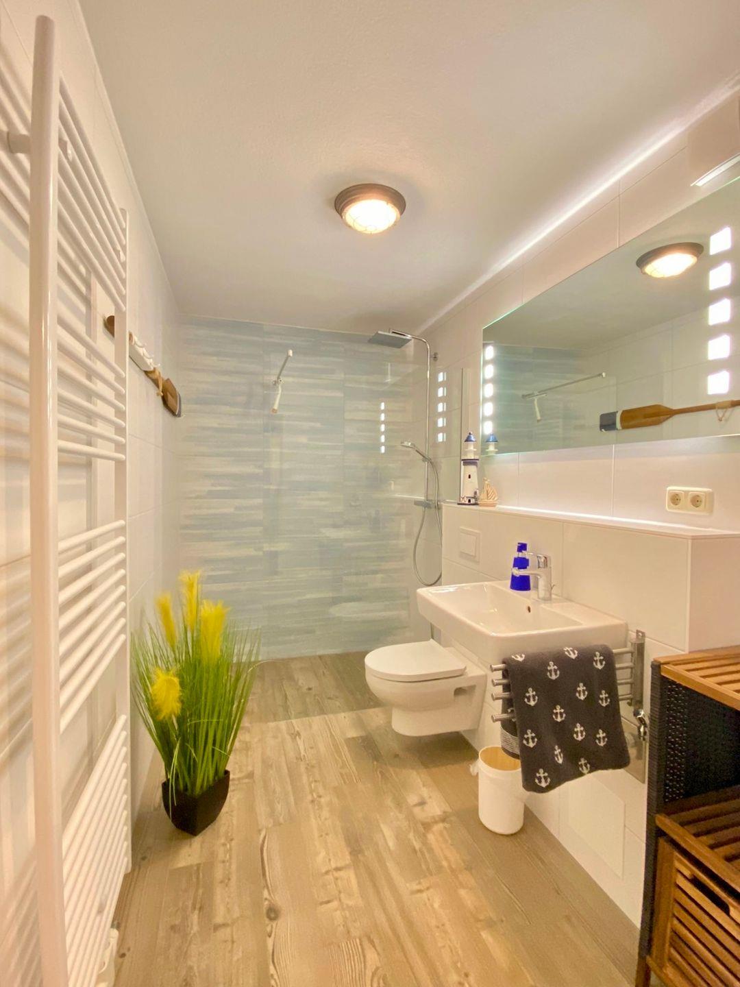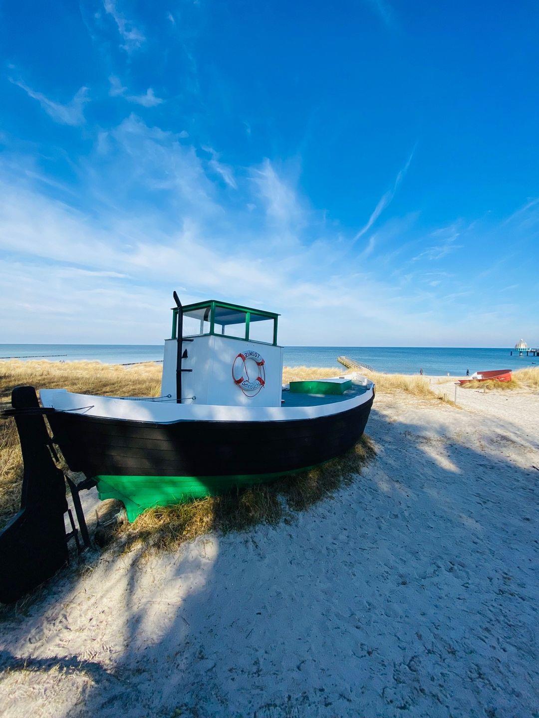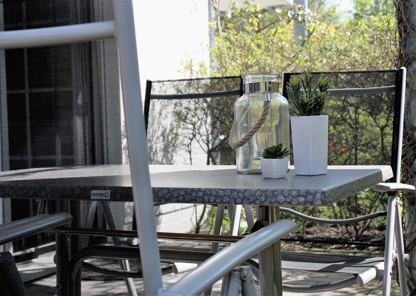 Zur Wohnung gehört eine große sonnige Südwestterrasse an welchen sich neue Fliegeengitter befinden. Bis zum Ostseestrand mit dem feinen Sandstrand sind es nur 50 m. Von dort aus kann man die malerischen Sonnenuntergänge genießen.