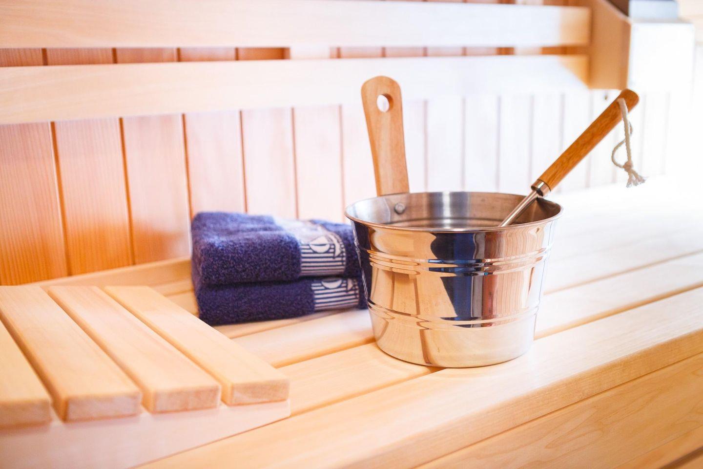 Zur Wohnung gehört außerdem ein großes Badezimmer mit Dusche/WC und einer Sauna mit Münzer.