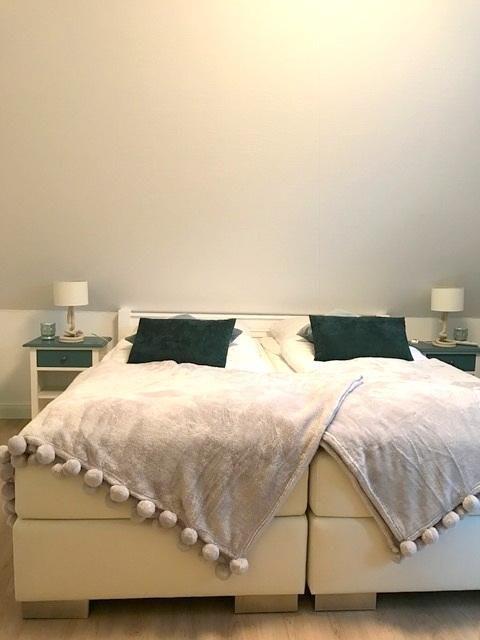 Wir bieten Ihnen drei Schlafräume, 2 Schlafraum mit Doppelbett und TV und 1 Schlafzimmer mit je zwei einzeln stehenden Betten im offenen Dachgeschoß.