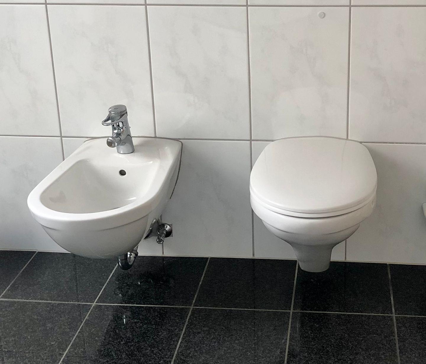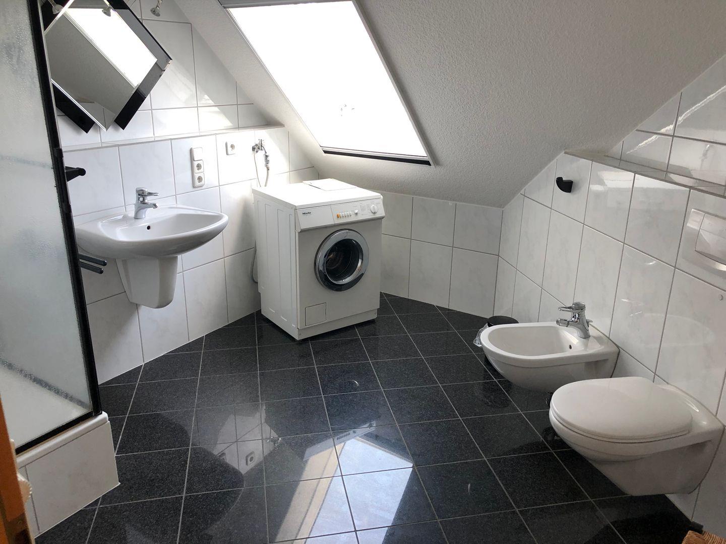 Im großen Badezimmer gibt es neben einer geräumigen Duschwanne, ein Bidet und eine Waschmaschine gegen Gebühr.