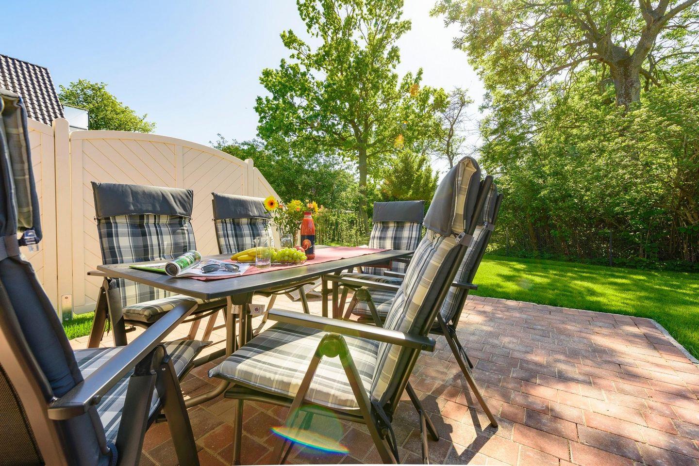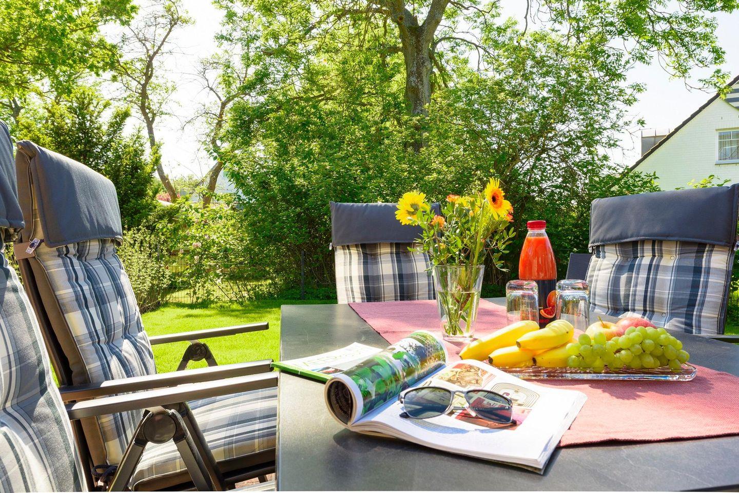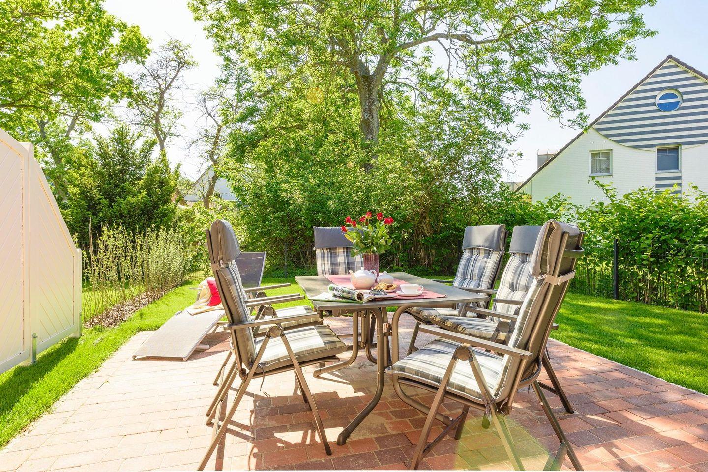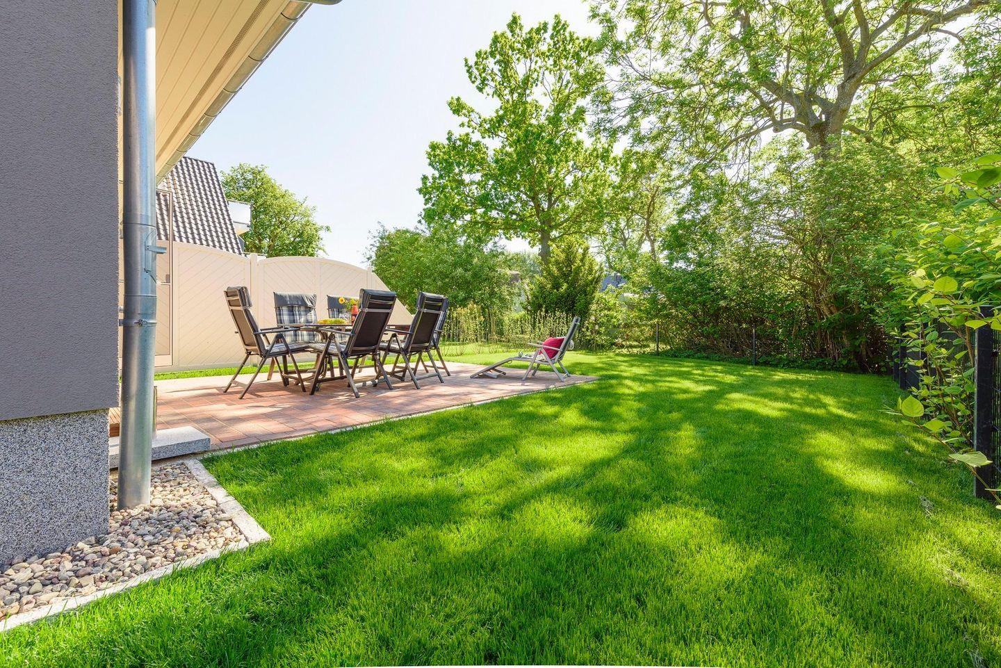 Im Garten stehen Gartenmöbeln, ein Sonnenschirm zur Verfügung.