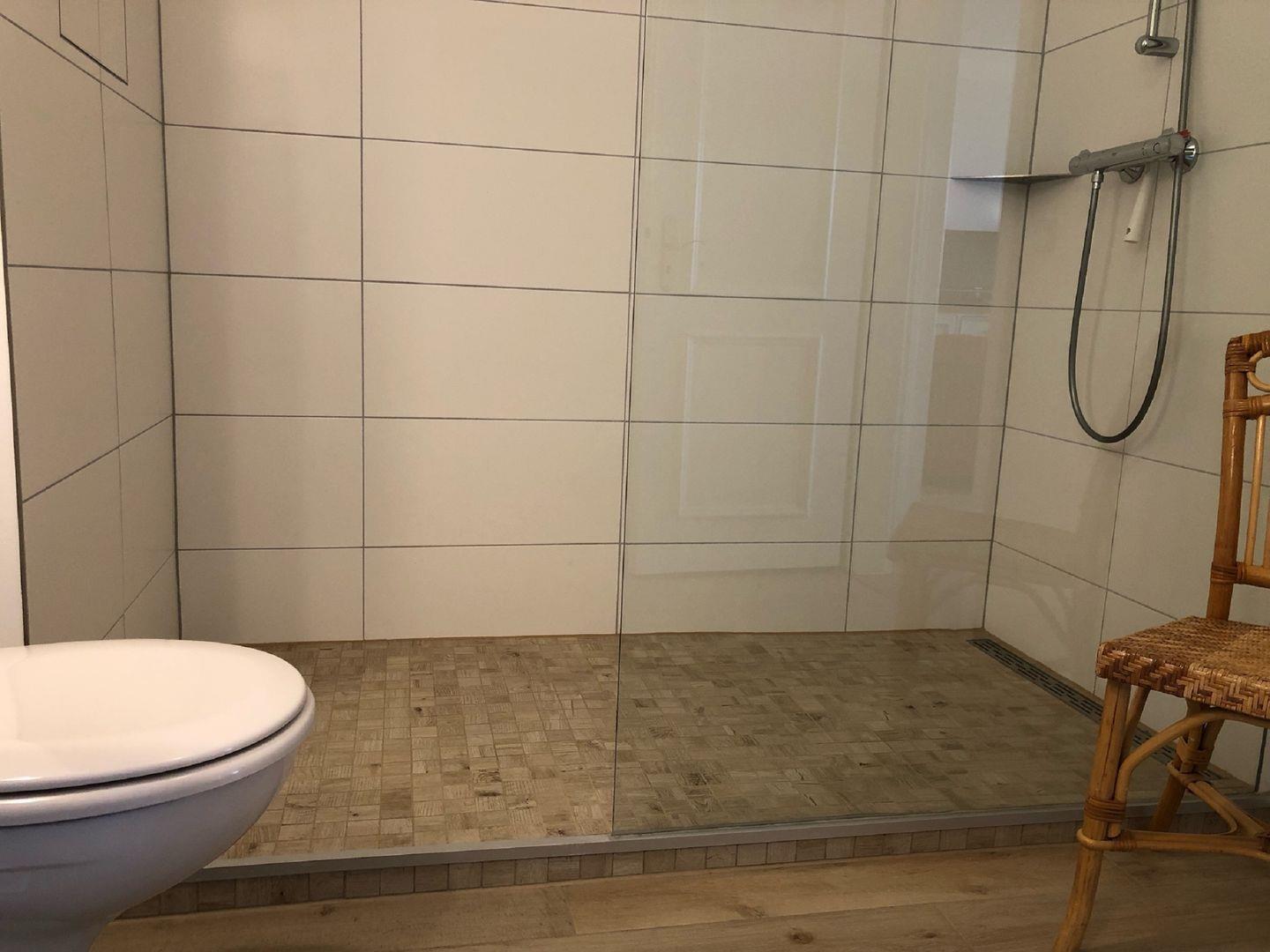 Vom separaten Flur gelangen sie in ein Bad mit Dusche und WC.