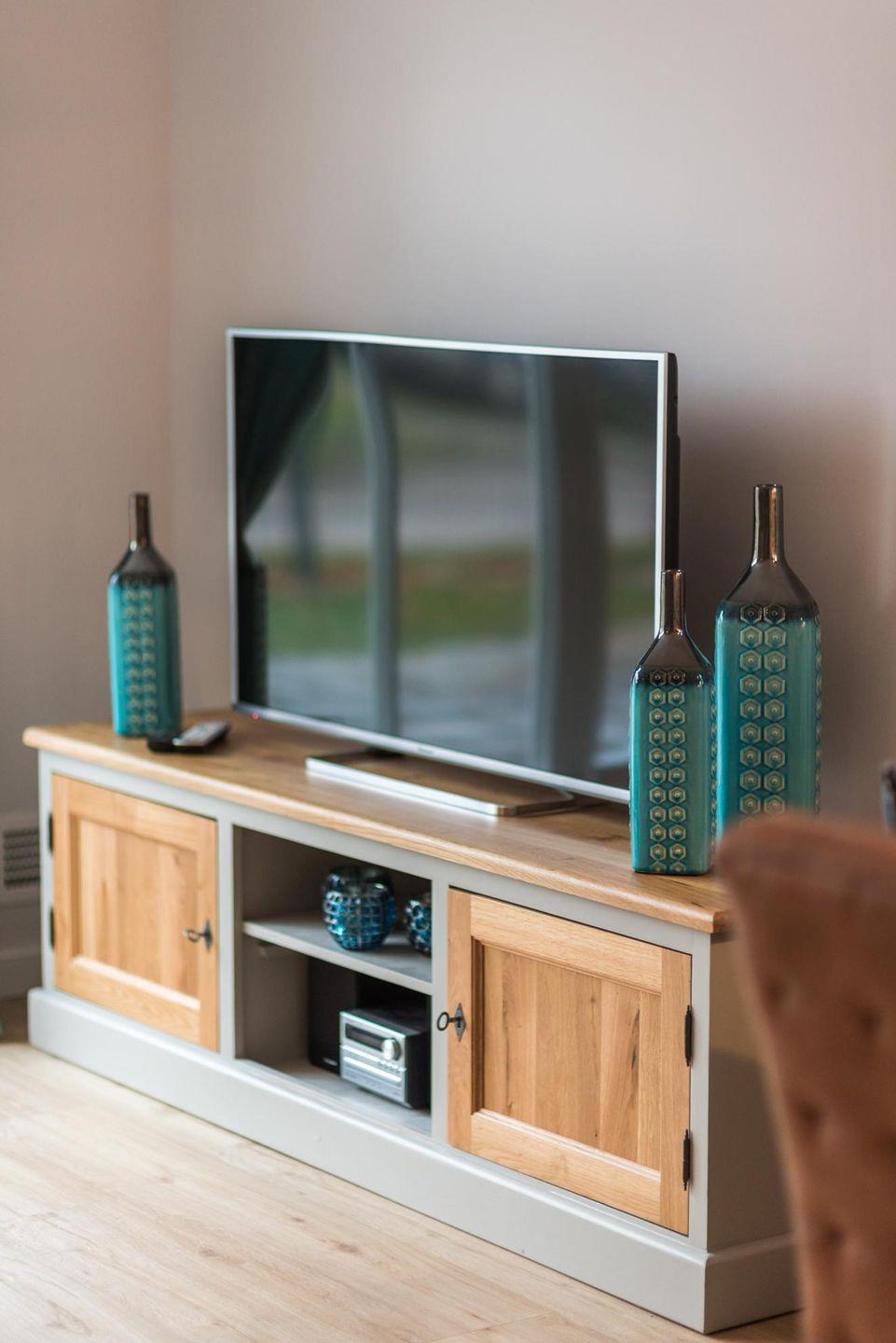Ein großzügiger Wohnraum mit Essbereich verfügt über LED-TV, Blue-Ray-HiFi-Anlage und Kaminofen sowie eine komplett ausgestattete Einbauküche. In 2 Schlafzimmer finden sie ein TV.