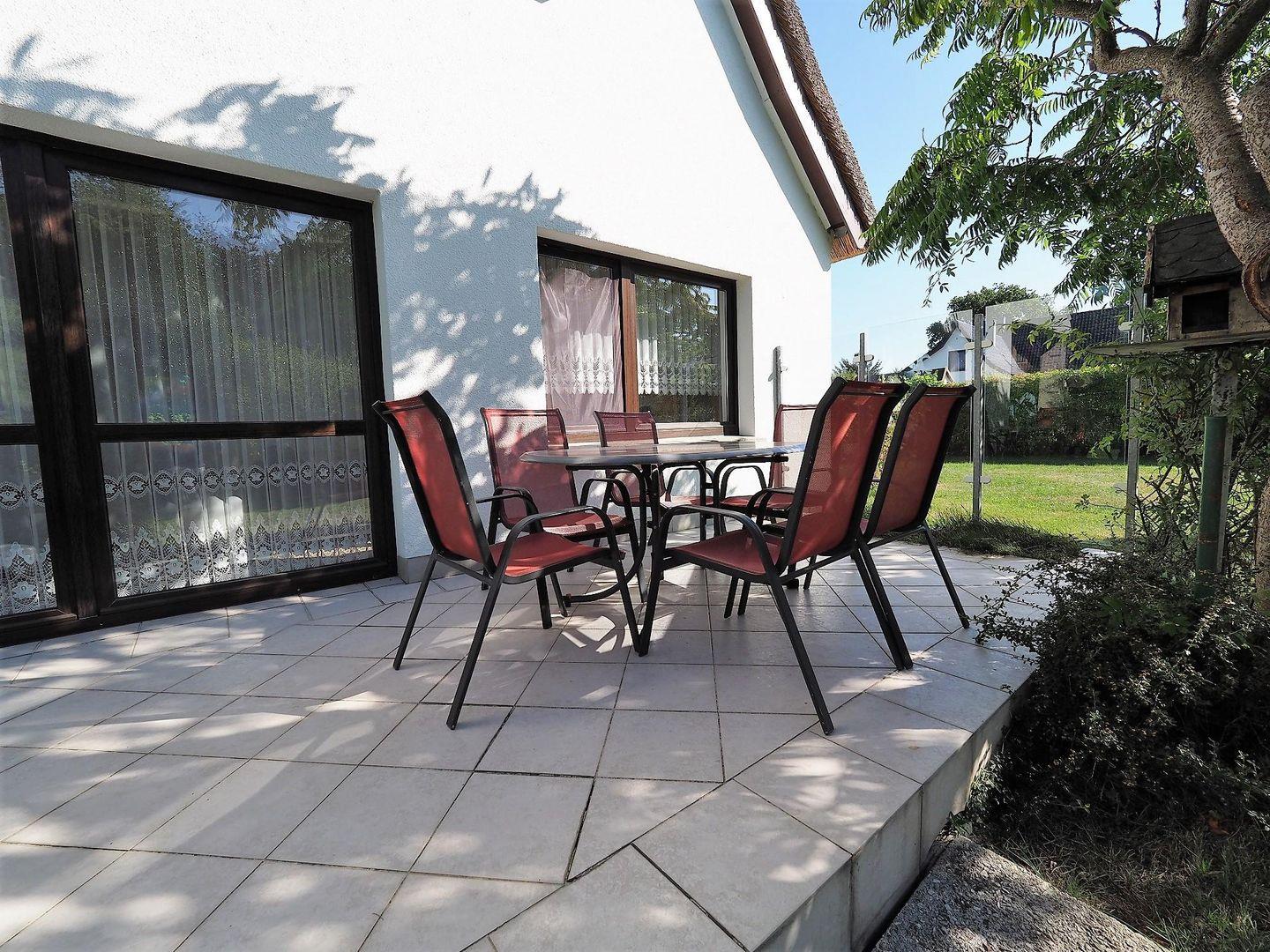 Eine behagliche Veranda ergänzt das ruhige Ambiente.