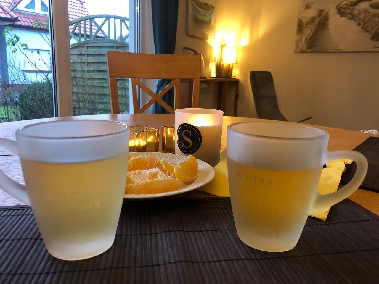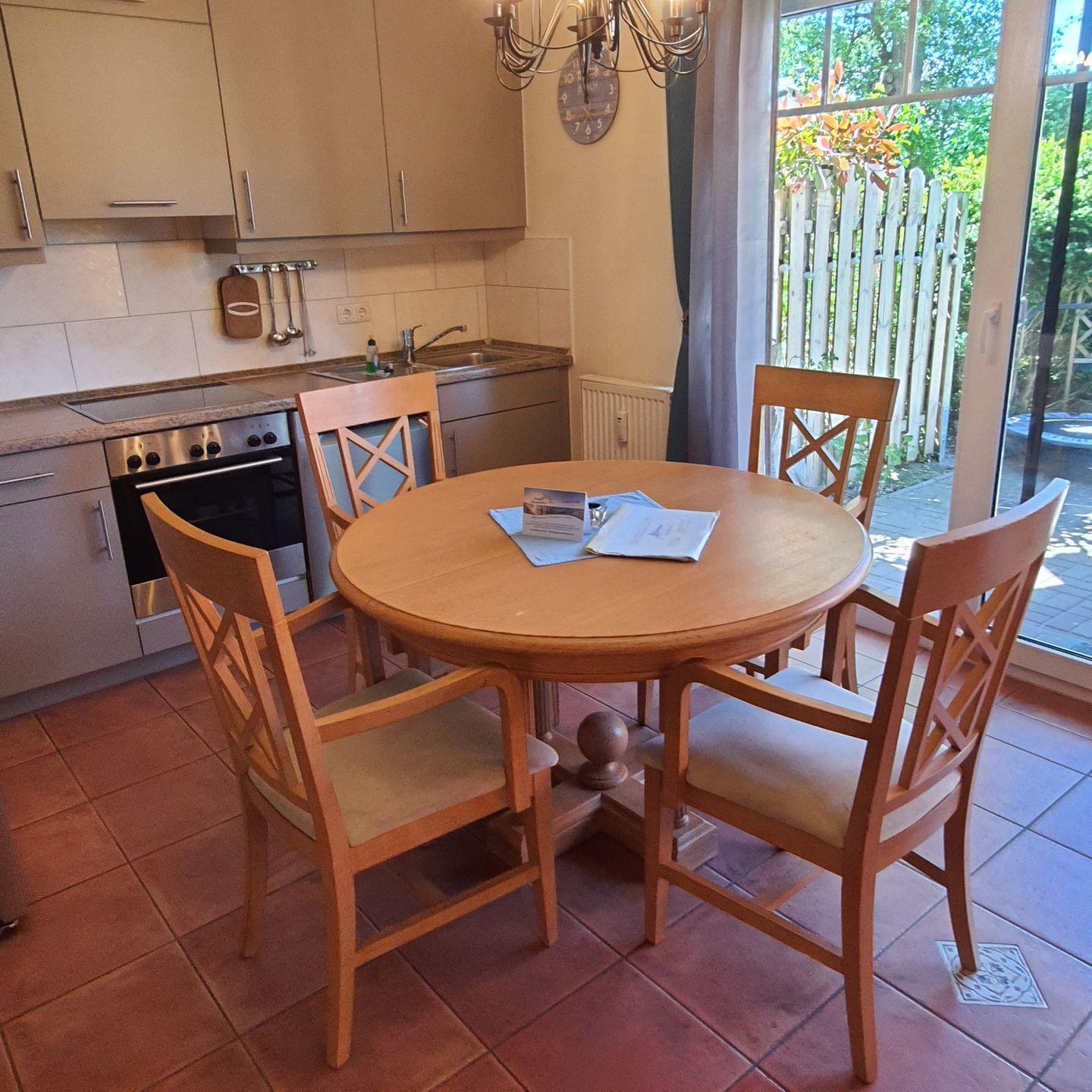 Die Ferienwohnung verfügt über einen offenen Wohn - Küchenbereich. Die Küche ist selbstverständlich voll ausgestattet mit Ceranfeld, Geschirrspüler, Backofen, Mikrowelle, Kaffeemaschine, Wasserkocher, Kühlschrank mit Gefrierfach, Toaster und allem, was man benötigt.