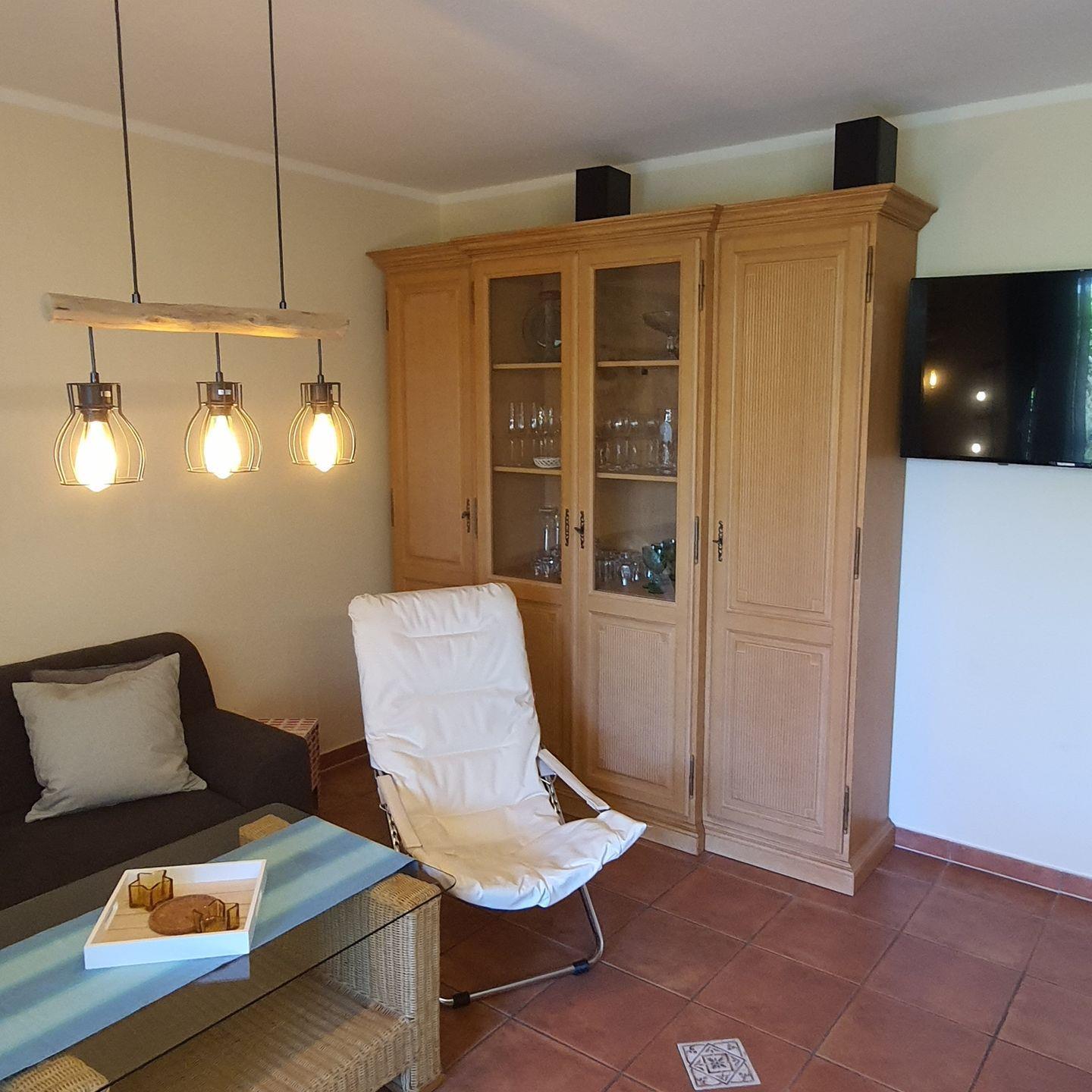 Für gemütliche Abende sorgt im Wohnzimmer ein TV, Blu-ray- und CD-Player sowie einem Radio.