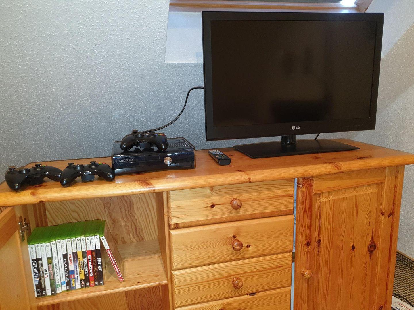 Gemütliche Ferienwohnung in einem Appartementhaus, ca.80 m², bis zum Strand sind es 250 m, OG, Balkon, Wohnzimmer mit kompletter Küchenzeile, 43Zoll Sat-TV, Blue-Ray Player, mit DAB-Radio, Xbox 360, Dusche/WC, 1 Schlafzimmer mit Ehebetten, 2. Obergesch. 1 Schlafzimmer mit Rollbett u. Schlafsofa (4Personen), Kinderbett mit Matratze und Hochstuhl inklusive,
