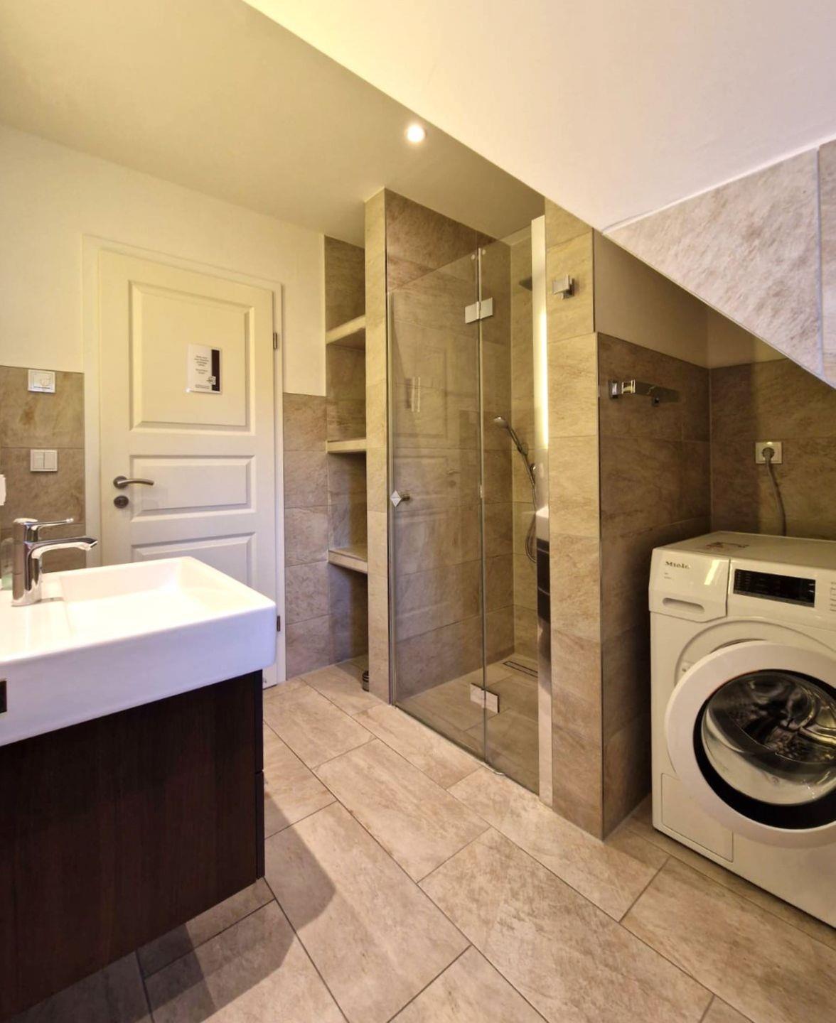 Ein Bad mit Dusche/WC und Waschmaschine.