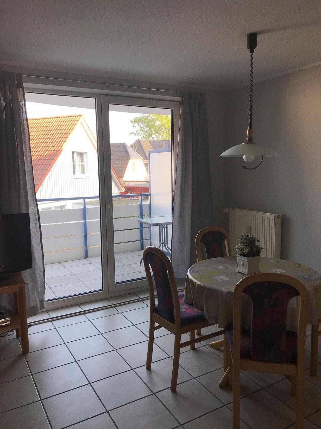 Gemütliche Ferienwohnung im Appartementhaus, 1.Stock, verfügt über 2 Balkone, zentral gelegen, zum Strand sind es ca.300m,1 PKW-Stellplatz, ca.48qm groß.