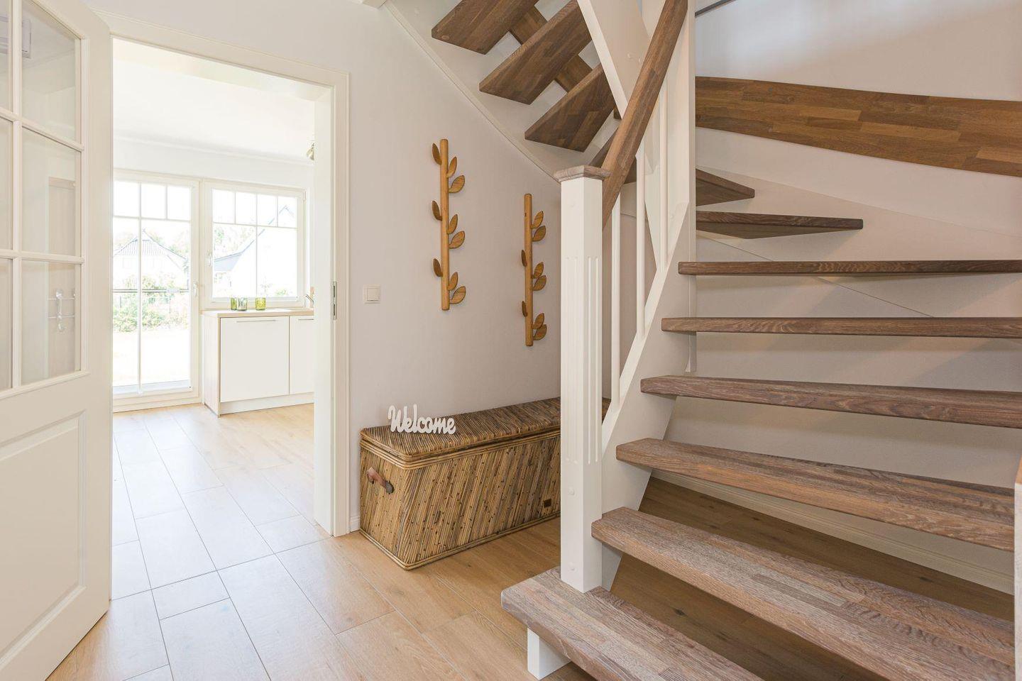 Erholen sie sich in der modernen, 2019 fertiggestellten Doppelhaushälfte. Dazu lädt ein lichtdurchfluteter, gemütlicher Wohn-Essbereich mit großem TV und Bluetooth - fähiger CD/ Radioanlage, sowie eine offene, komplett ausgestattete Küche mit Herd, Ofen, Mikrowelle und Kühl-Gefrierkombination mit Kühlschrank auf Augenhöhe ein. Für besten Komfort sorgen auch die beiden Bäder mit bodengleicher Dusche, eines davon mit Badewanne und die 3 Schlafzimmer mit TV für insgesamt fünf Personen (zwei Doppelbetten, ein Einzelbetten). Bei Bedarf sorgt die Fußbodenheizung auf beiden Etagen für behagliche Wärme.